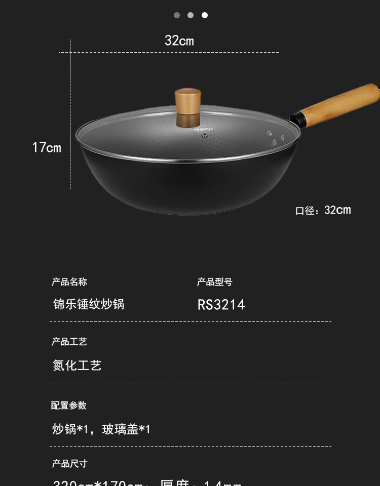 商品名称:RSFH/乐仕菲斯32cm锦乐锤纹炒锅RS3214