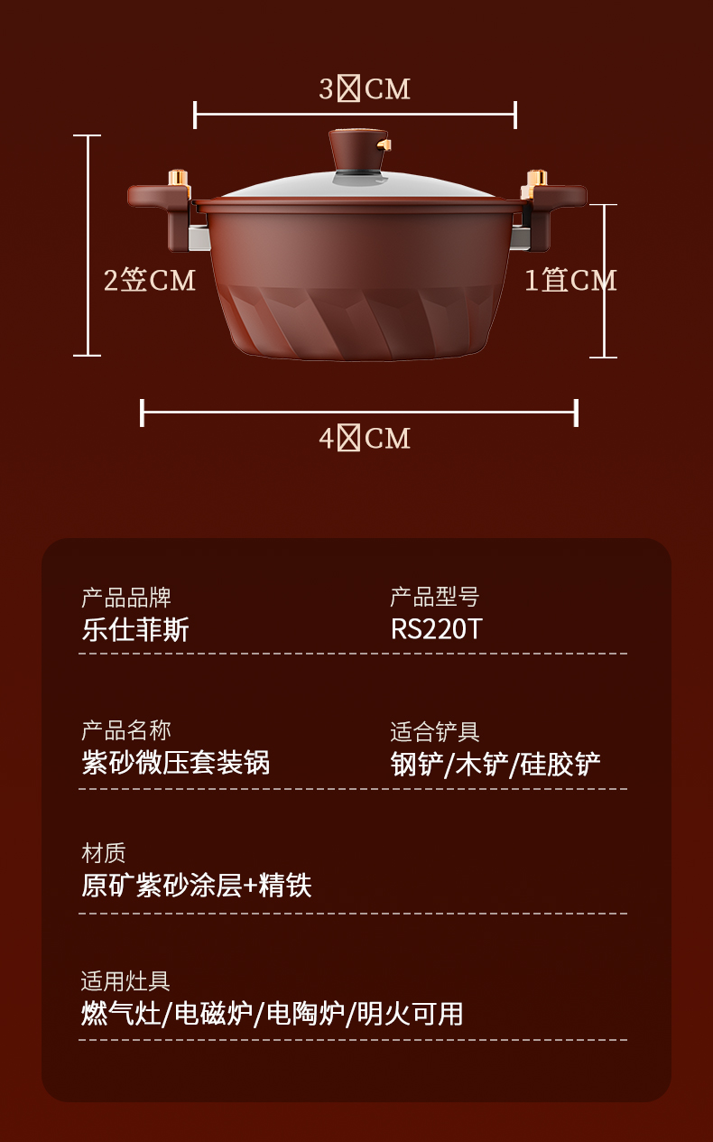 商品名称:RSFH/乐仕菲斯33cm紫砂微压套装锅RS220T