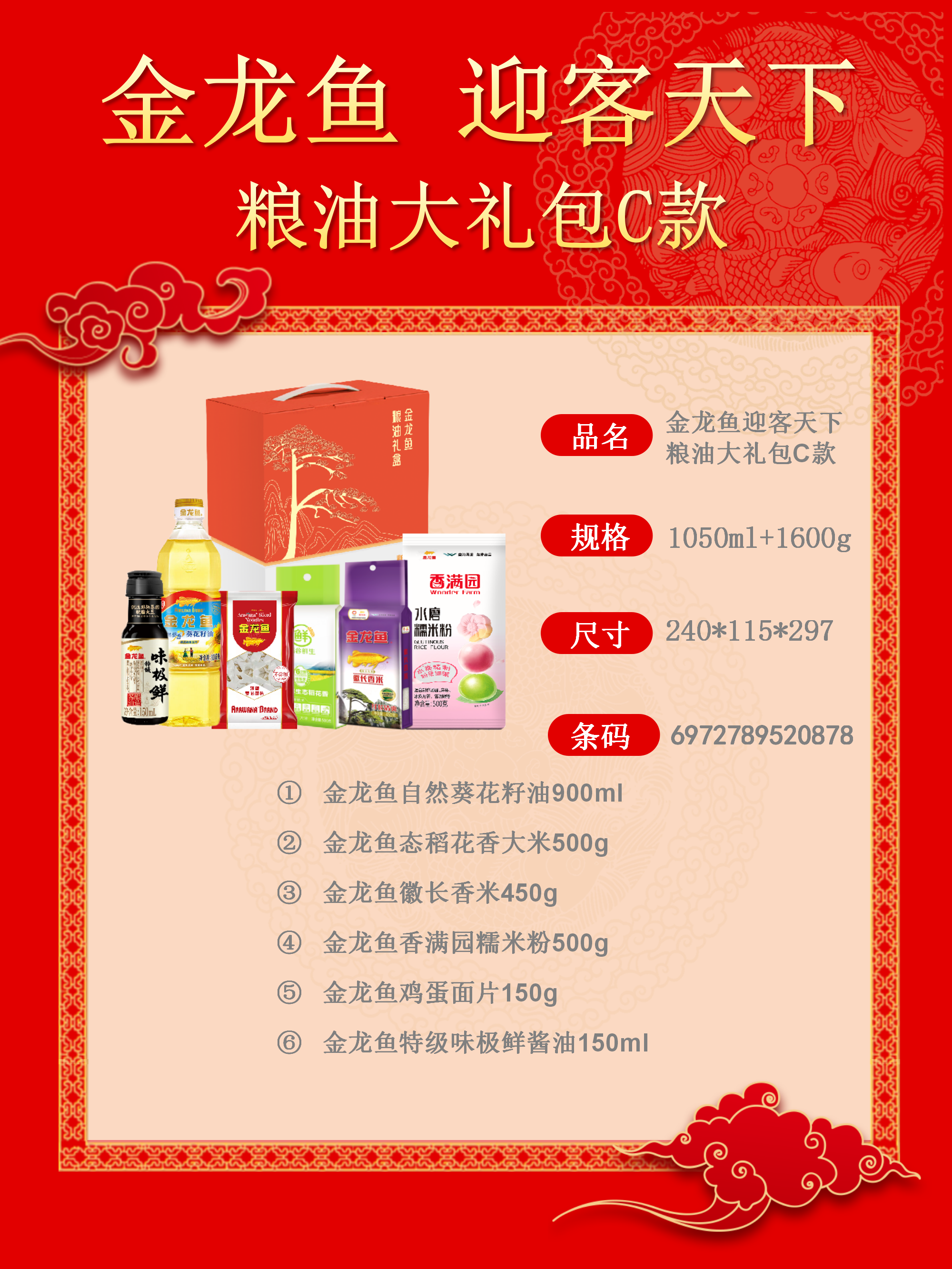 商品名称:金龙鱼迎客天下粮油大礼包C款1600g+1050ml
