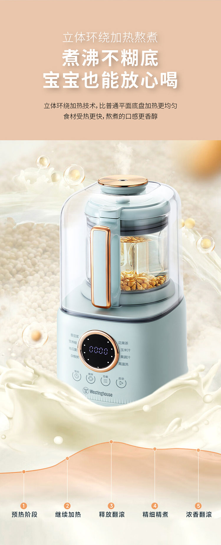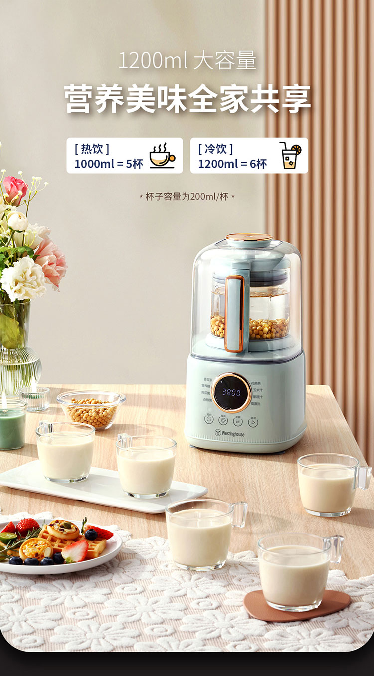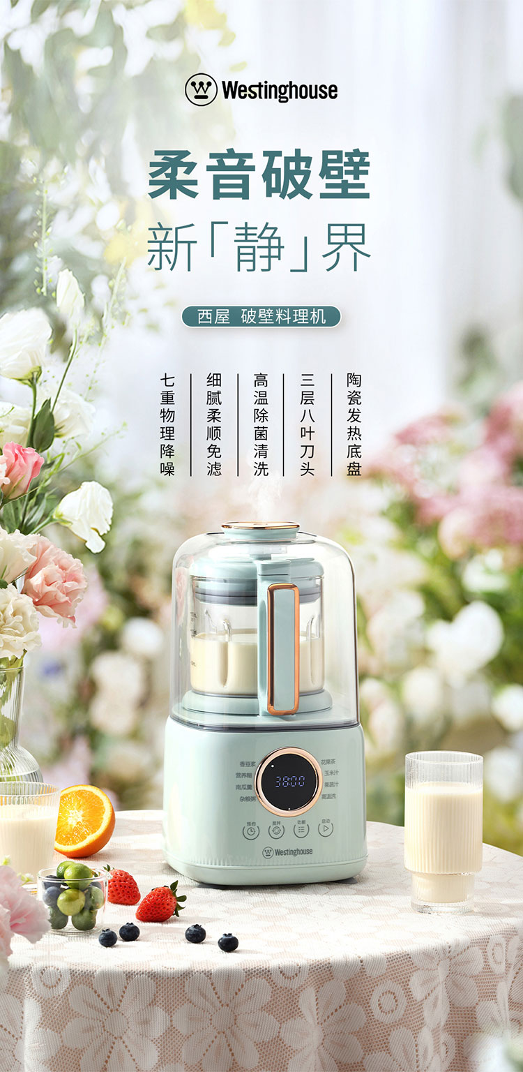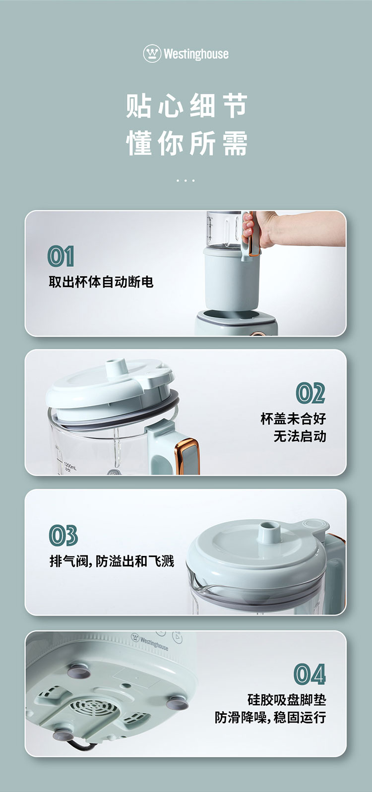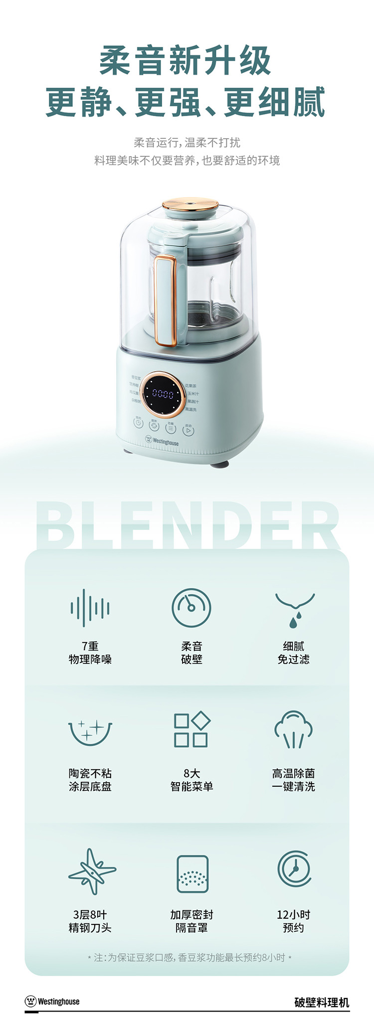 Westinghouse/西屋1.2升柔音破壁料理机-水湖蓝WPB12J29