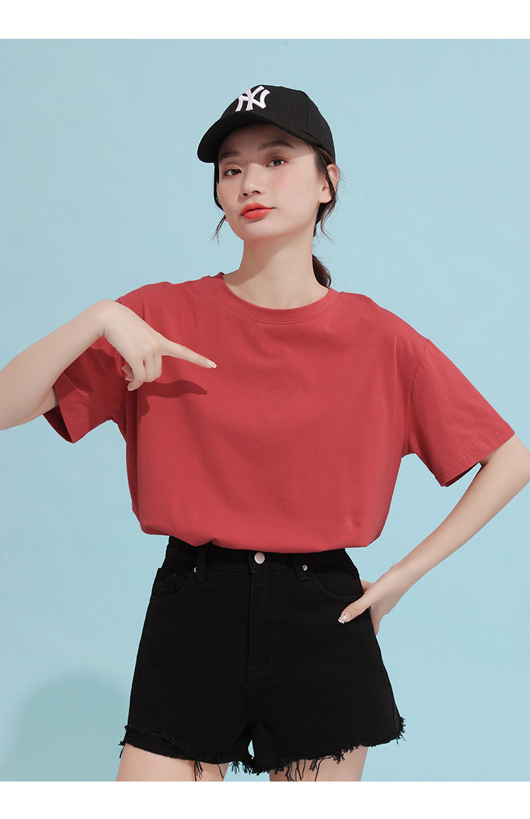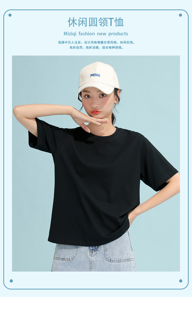 商品名称:米子旗纯色简约圆领T恤夏季女通勤减龄基础打底短袖上衣 329498