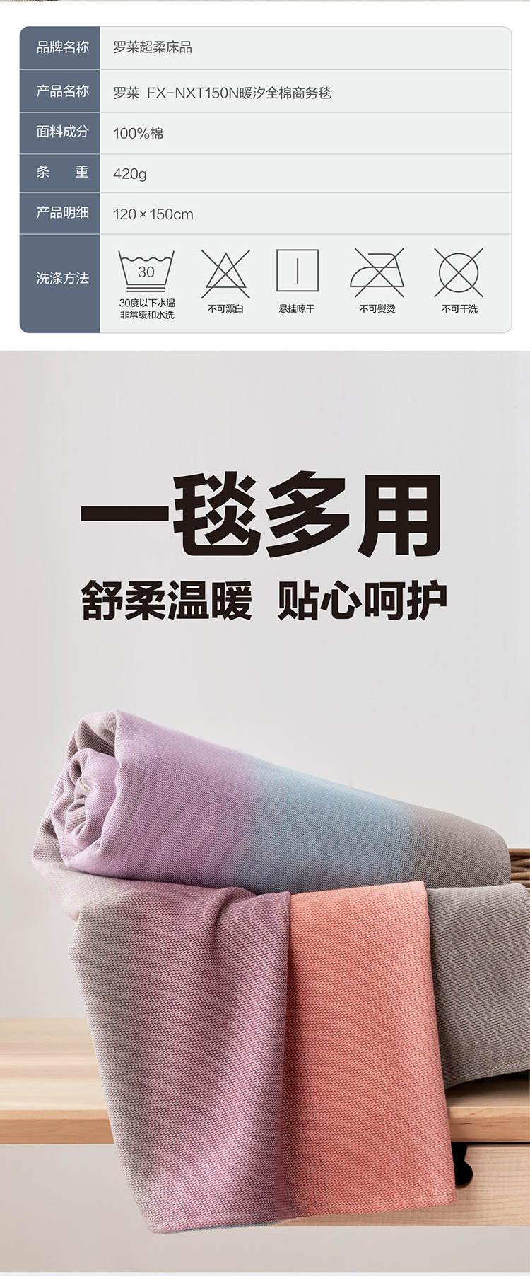商品名称:【京东配送】LUOLAI/罗莱家纺暖汐全棉商务毯FX-NXT150N 120*150cm 420g