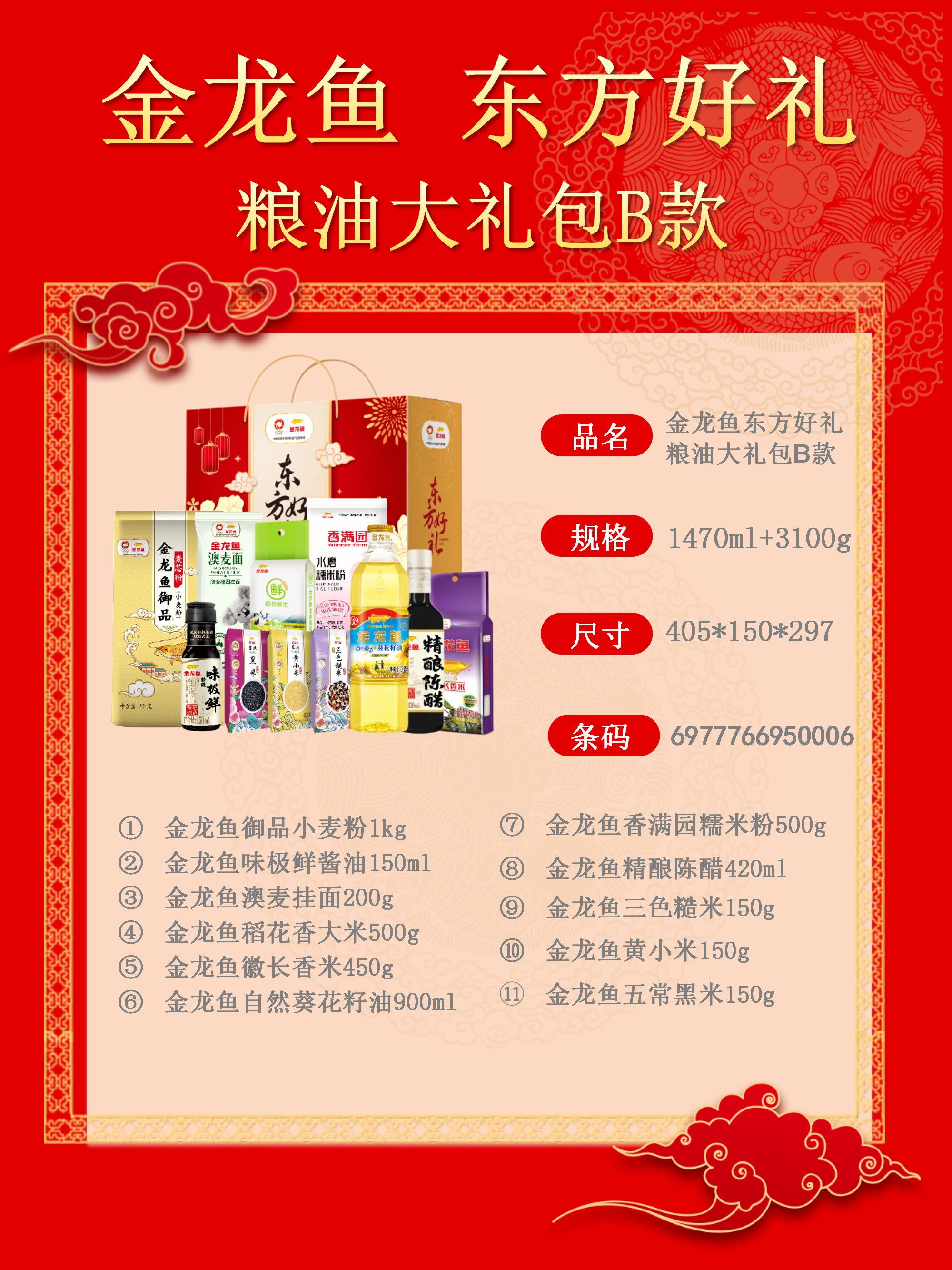 商品名称:金龙鱼东方好礼粮油大礼包B款3100g+1470ml