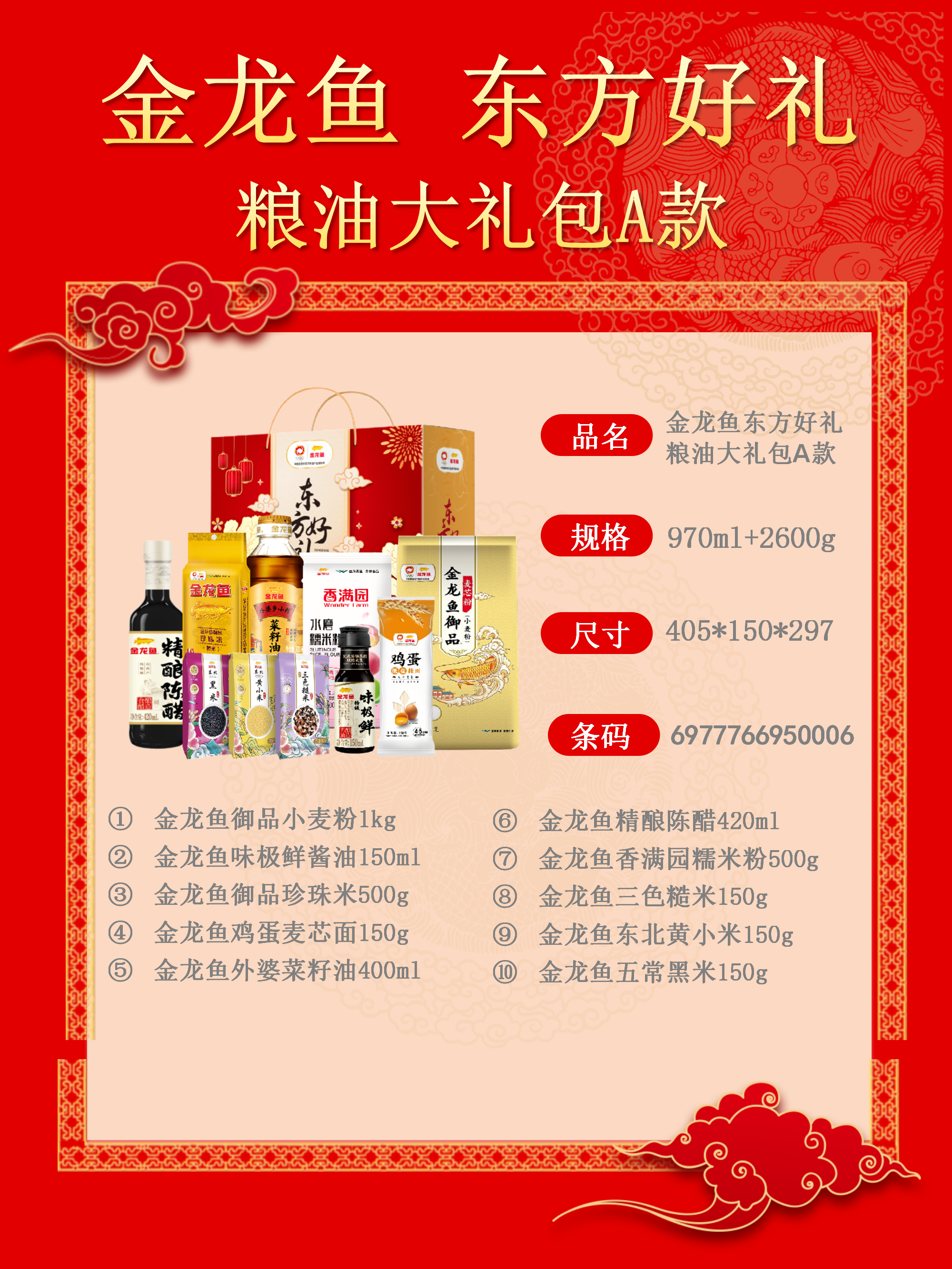 商品名称:金龙鱼东方好礼粮油大礼包A款2600g+970ml