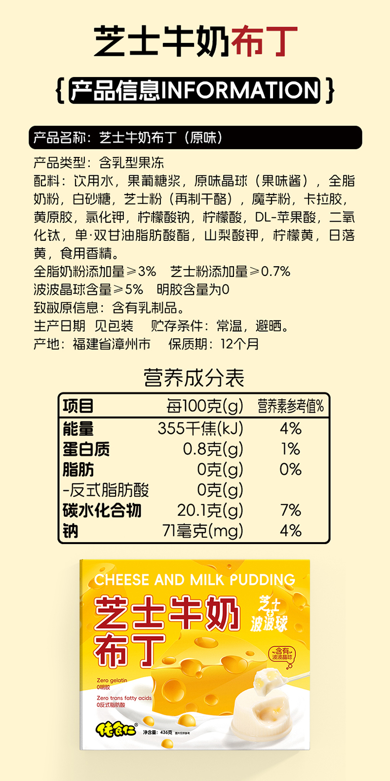 商品名称:佬食仁芝士牛奶布丁果冻436g