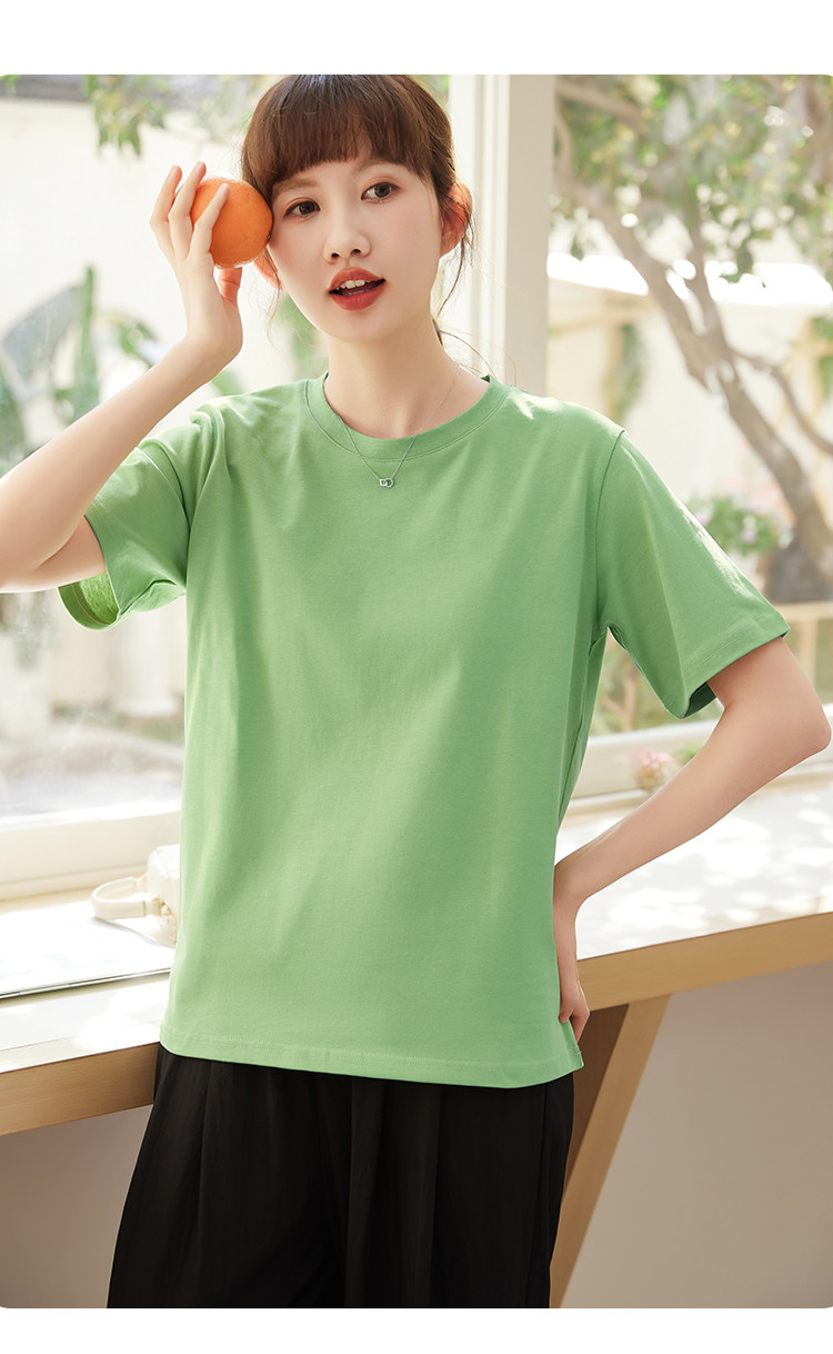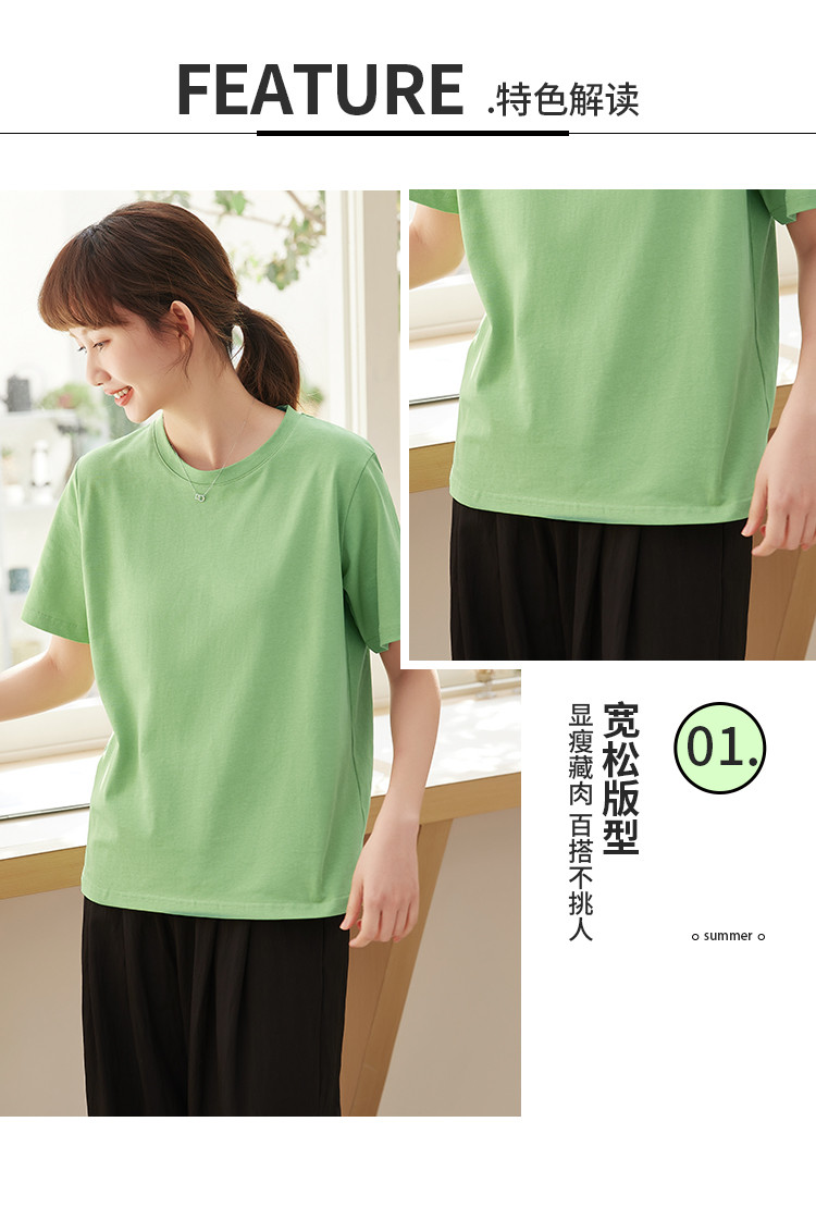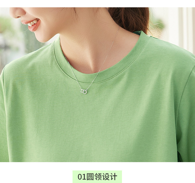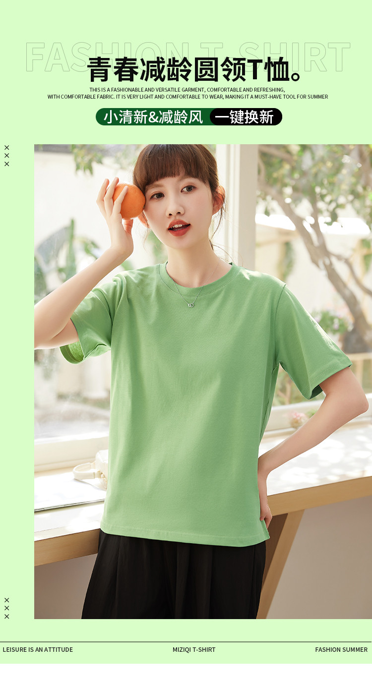 米子旗夏季圆领简约纯色女式T恤宽松休闲显瘦短袖上衣 602586