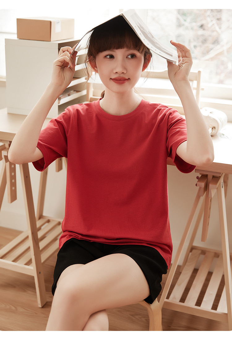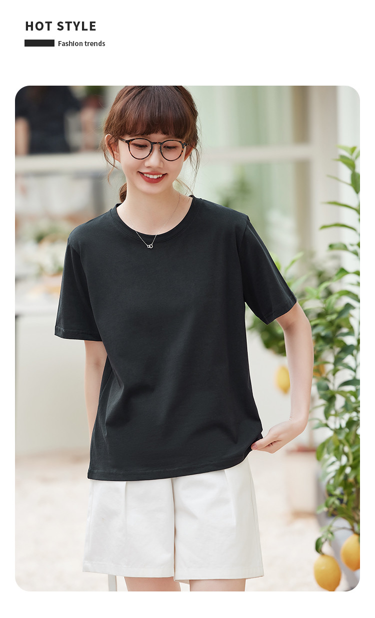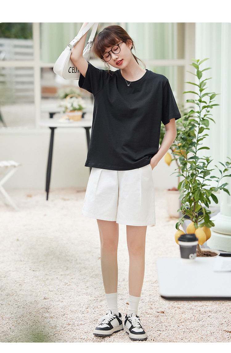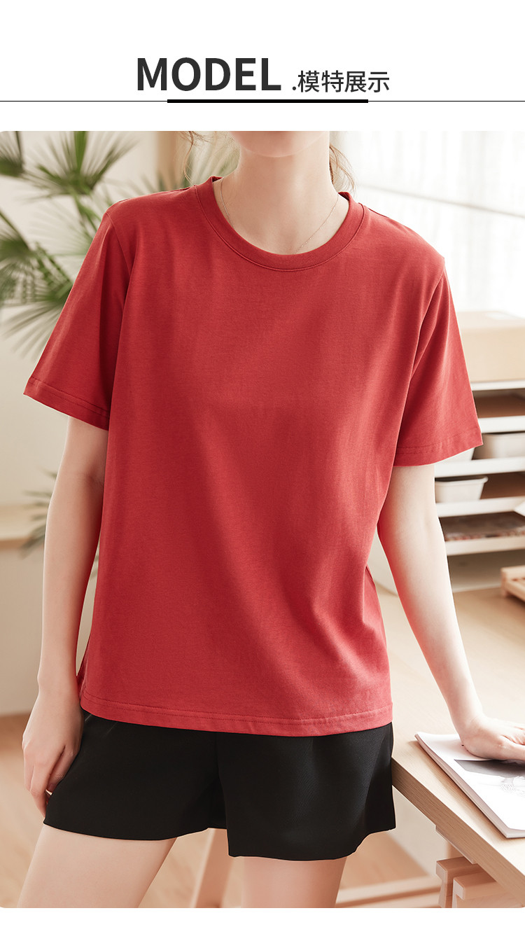 米子旗夏季圆领简约纯色女式T恤宽松休闲显瘦短袖上衣 602586