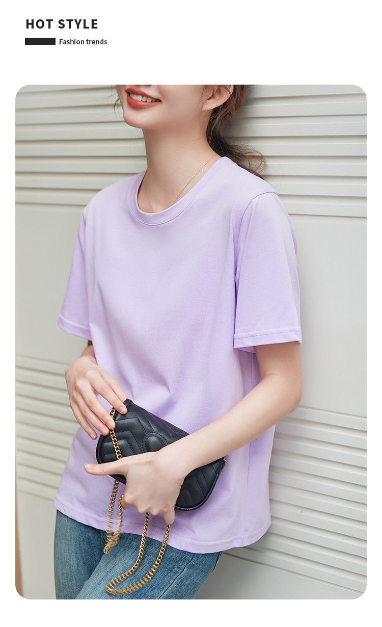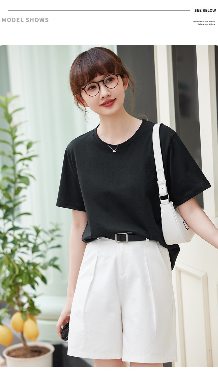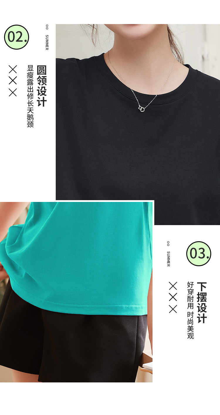 商品名称:米子旗夏季圆领简约纯色女式T恤宽松休闲显瘦短袖上衣 602586