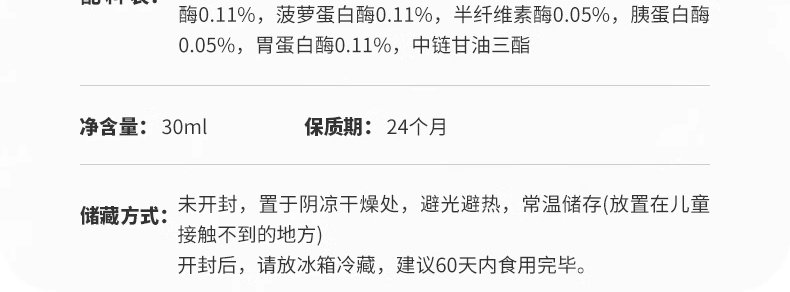 商品名称:素臣(SUCHEN) 婴幼儿复合消化酶滴剂 30ml