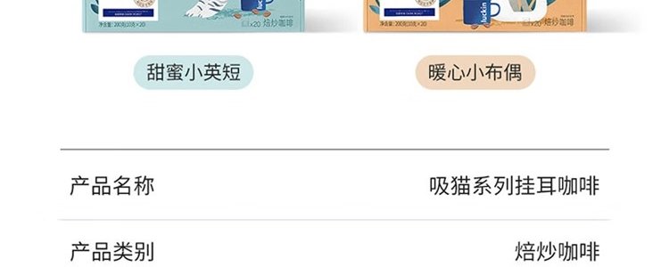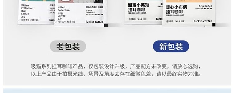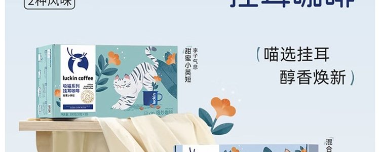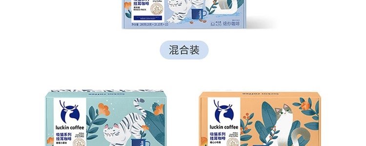 商品名称:瑞幸咖啡(luckin coffee)吸猫系列2.0挂耳咖啡混合口味 10g*20包/盒 新旧包装随机发货