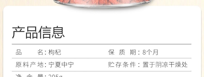 商品名称:蜜之番 红枸杞 205g*2罐