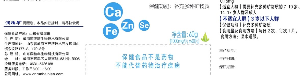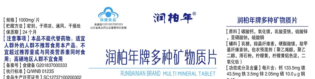 商品名称:润柏年 多种维生素矿物质片 1000mg*60片