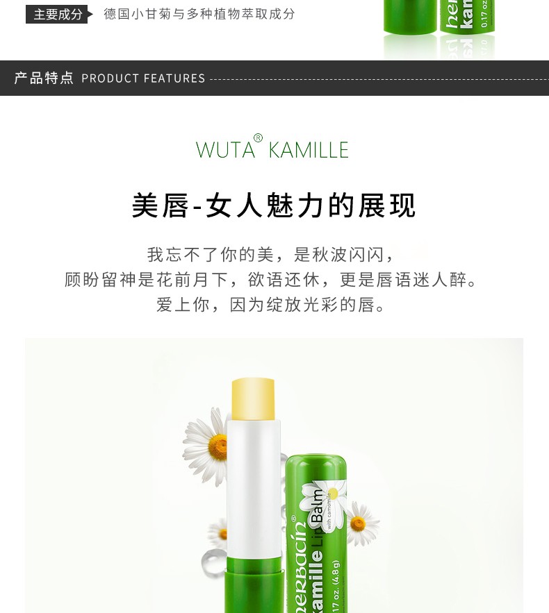 商品名称:Herbacin/贺本清 小甘菊唇膏 4.8G