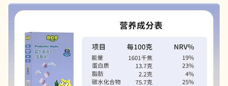 商品名称:碧欧奇 婴幼儿牛奶溶豆(原味、草莓、蓝莓随机发)20g*3盒
