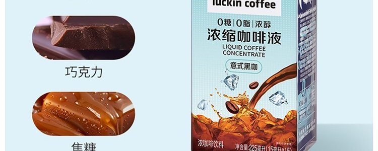 商品名称:瑞幸咖啡(luckin coffee)0糖0脂浓缩咖啡液 意式黑咖 15ml*15杯/盒