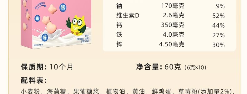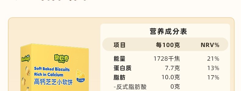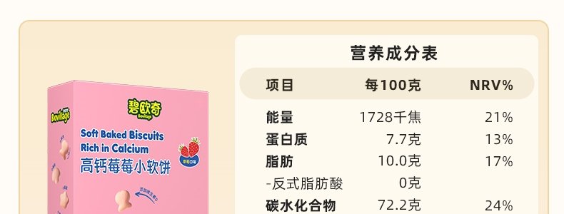 商品名称:碧欧奇 高钙小软饼(芝芝、莓莓随机发)60g*2盒
