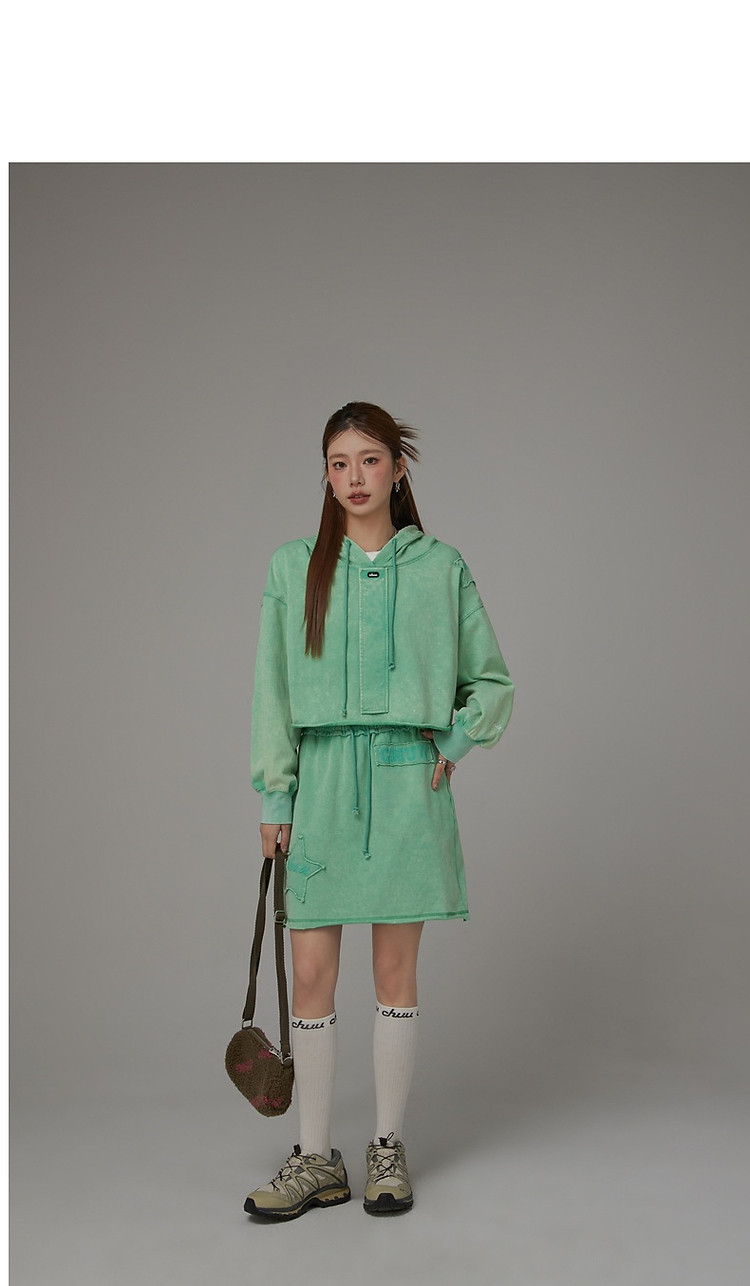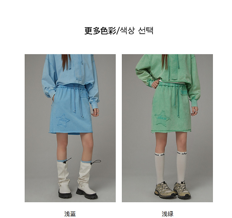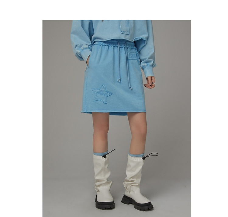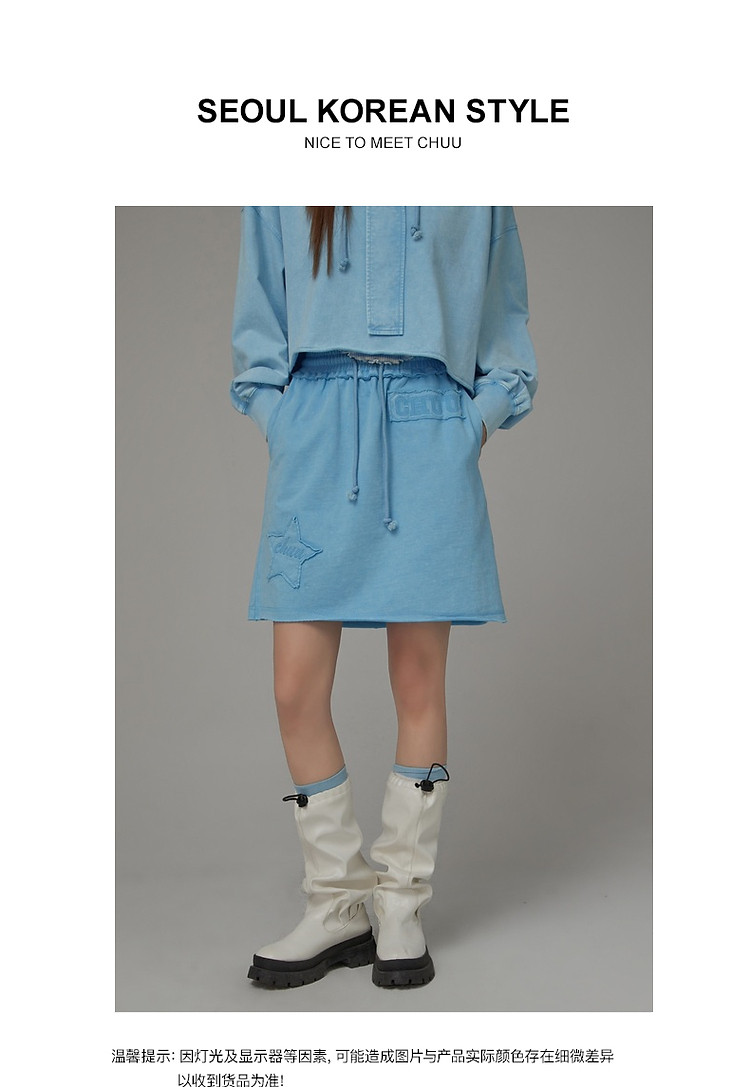 商品名称:CHUU字母星星贴布绣半身裙女秋松紧腰抽绳a字短裙子 850579