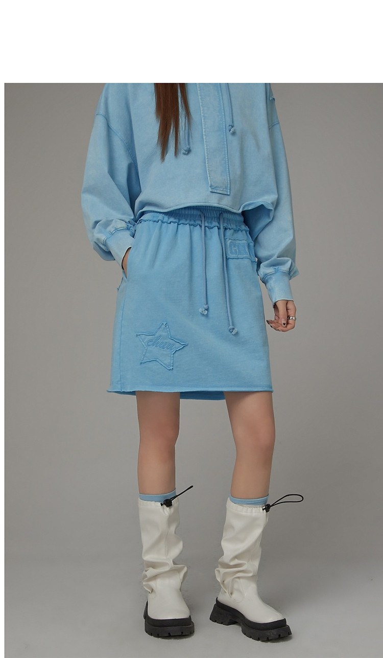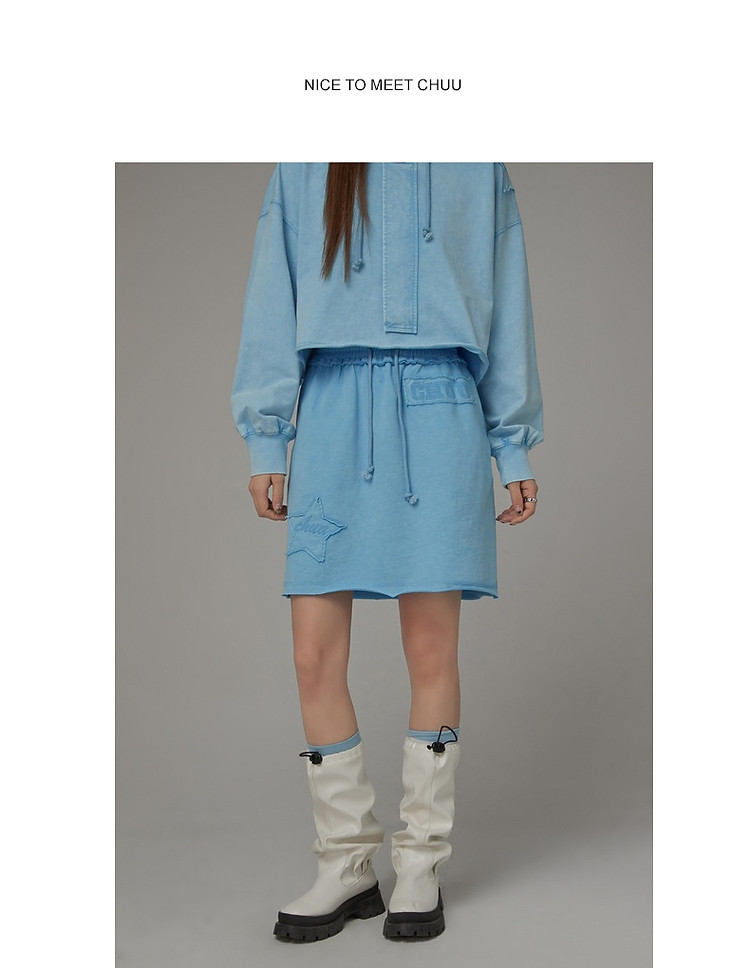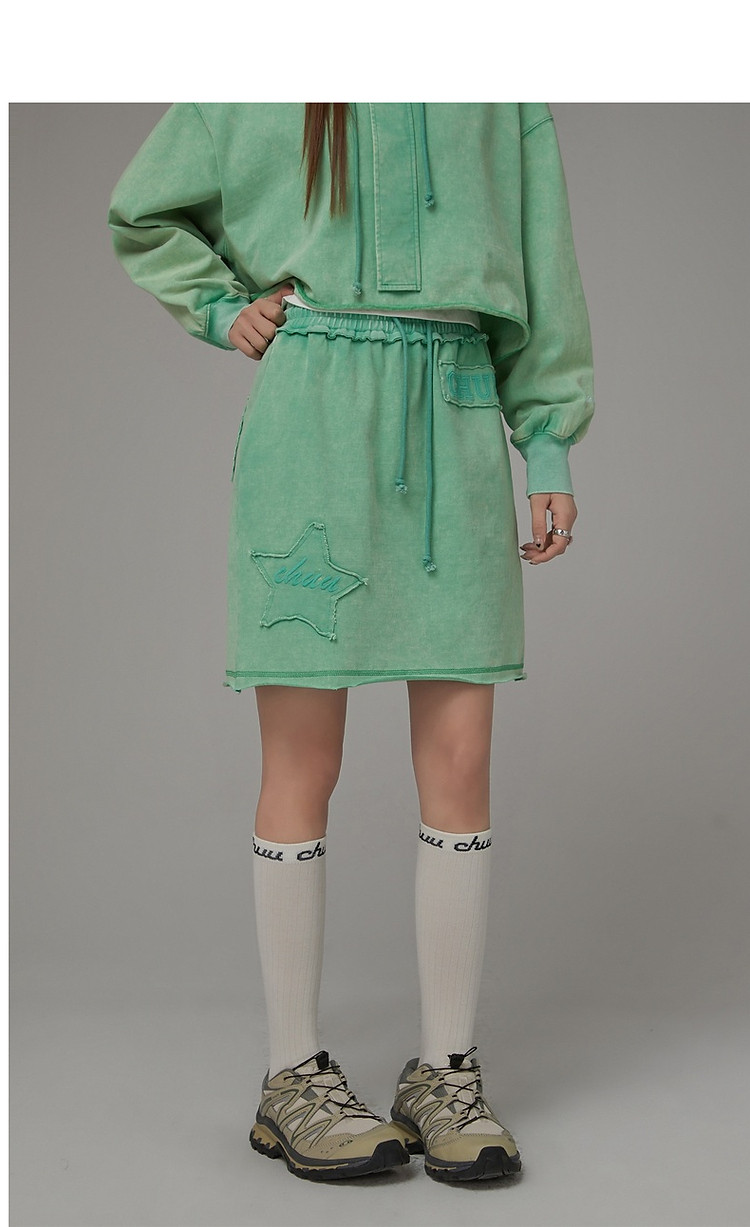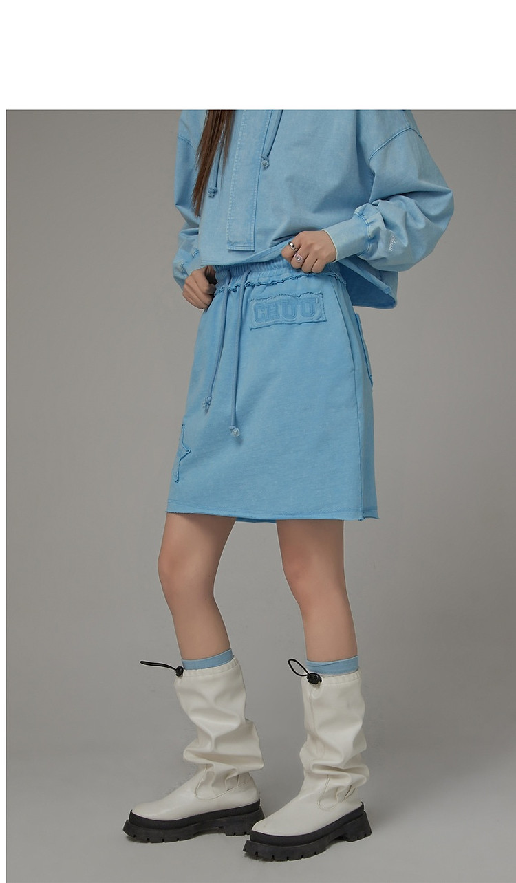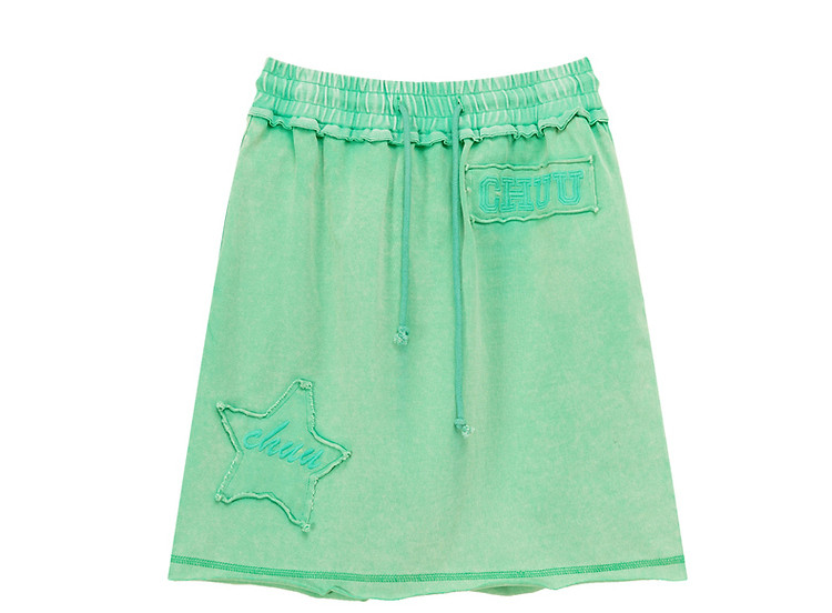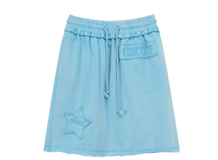 CHUU字母星星贴布绣半身裙女秋松紧腰抽绳a字短裙子 850579