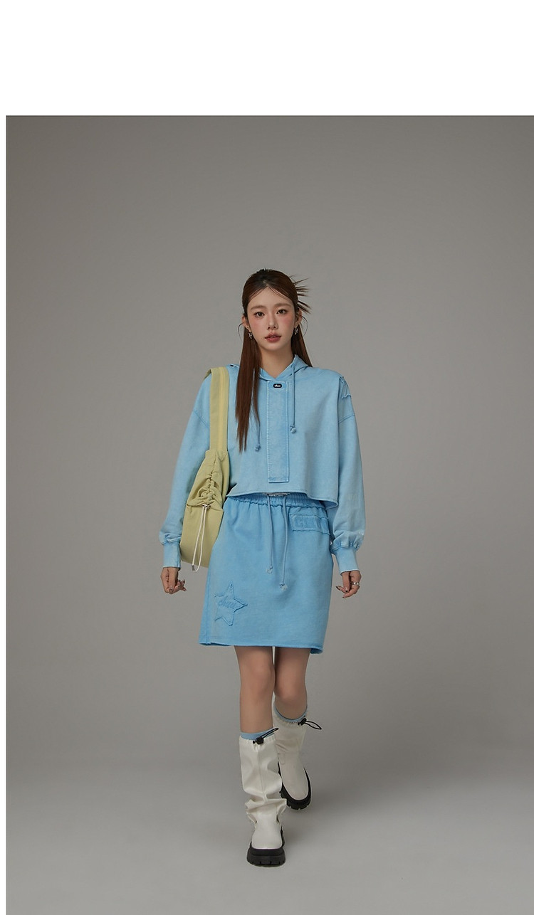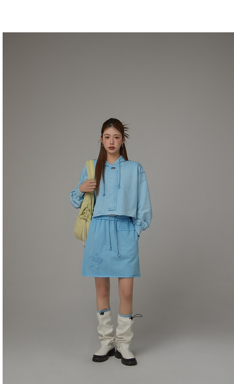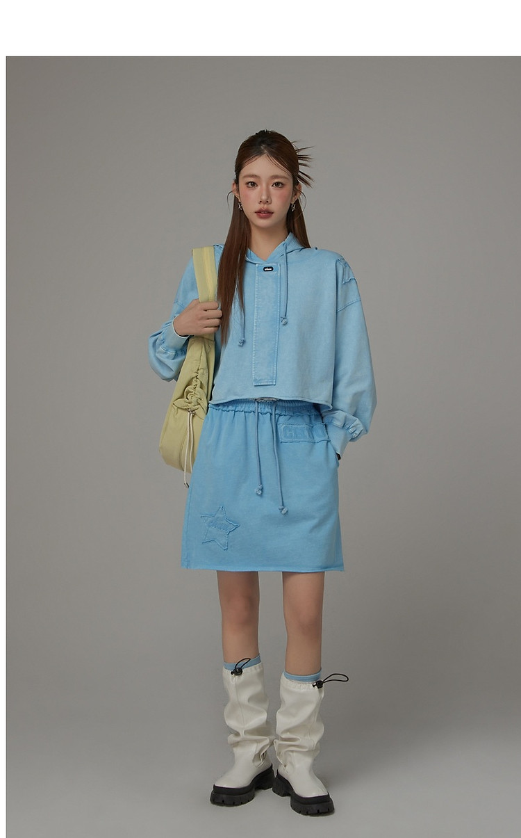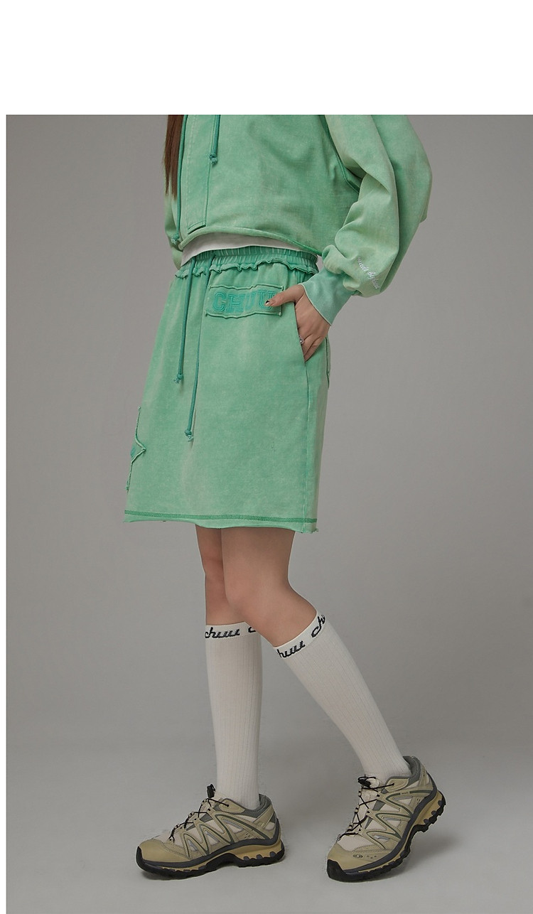 CHUU字母星星贴布绣半身裙女秋松紧腰抽绳a字短裙子 850579