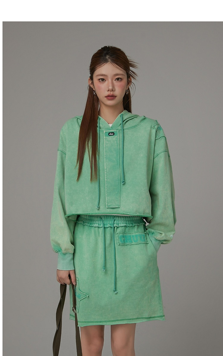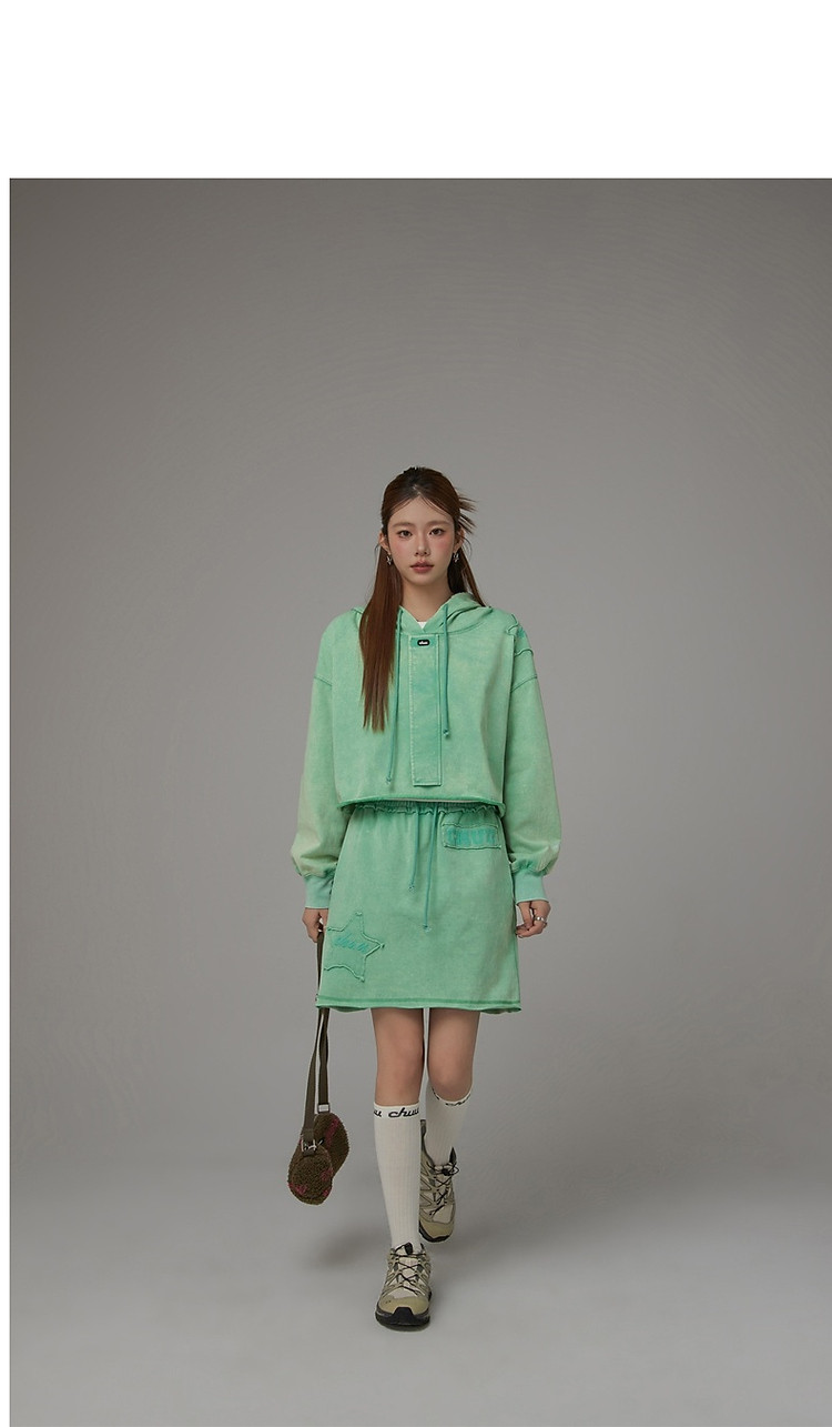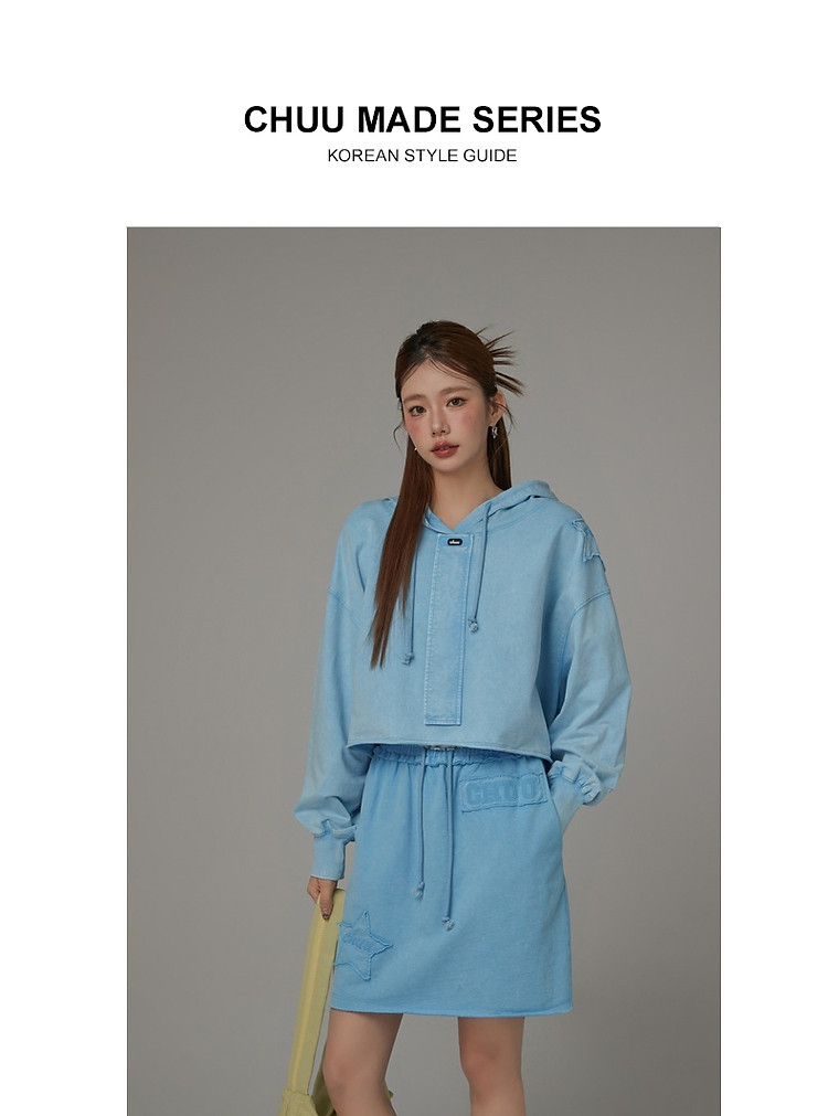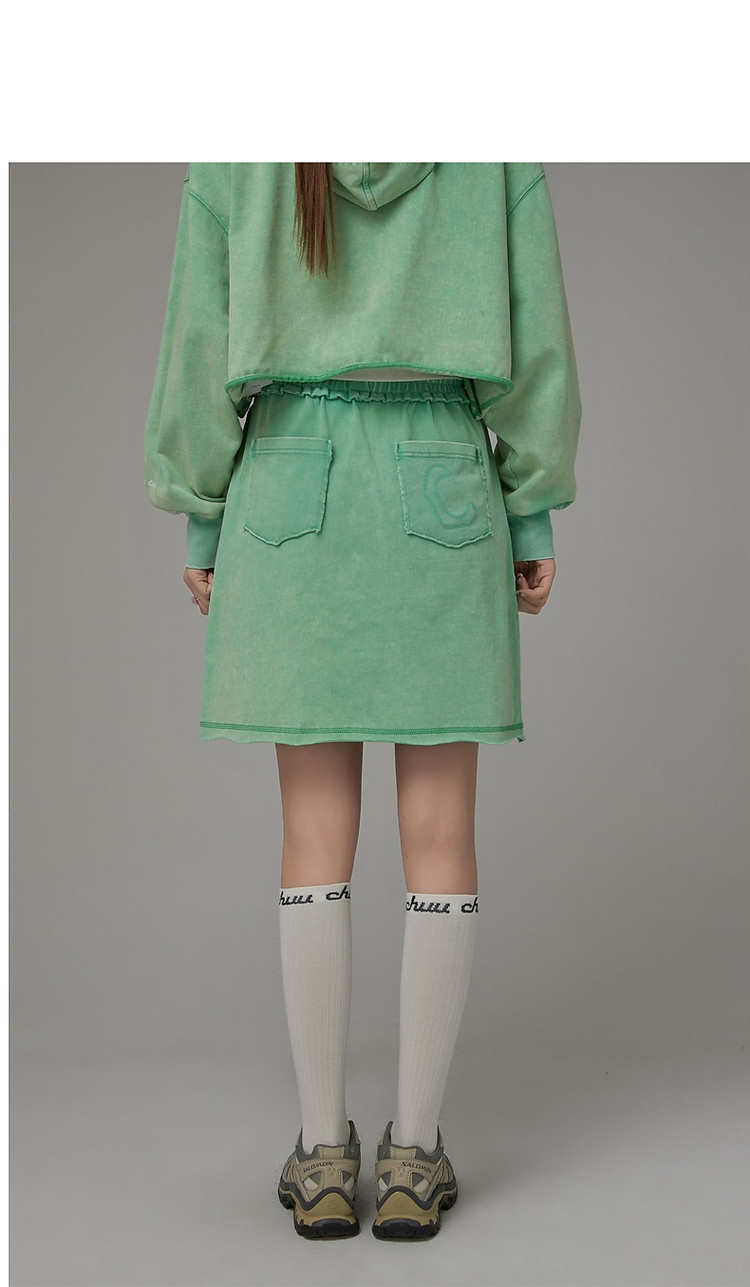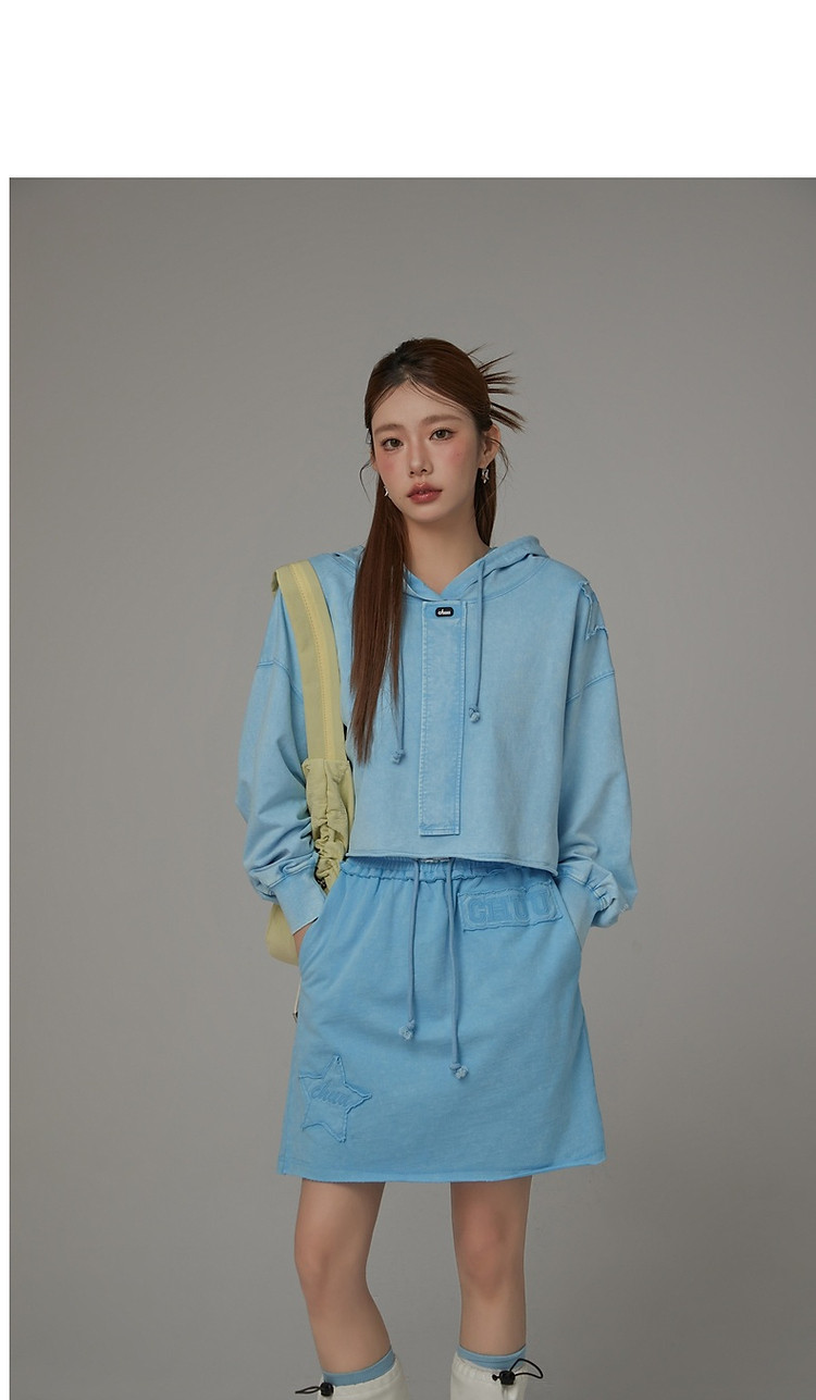 CHUU字母星星贴布绣半身裙女秋松紧腰抽绳a字短裙子 850579