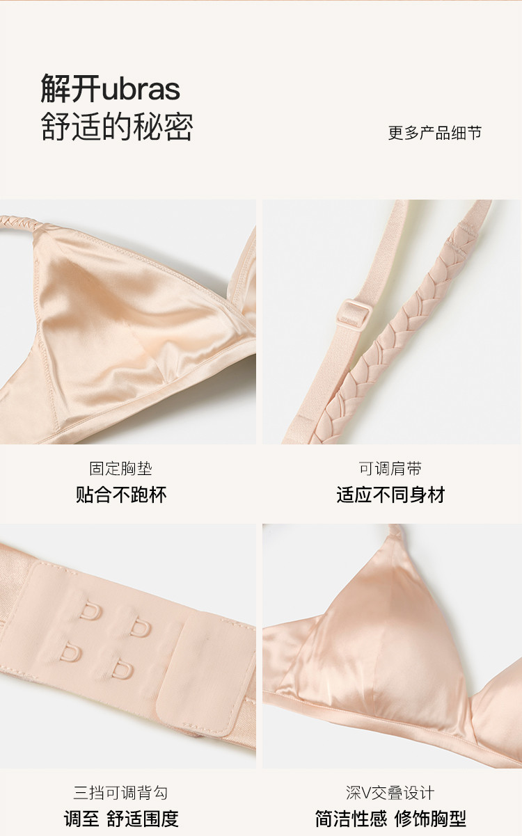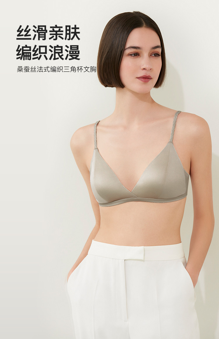 商品名称:【性感轻盈】桑蚕丝法式编织深V美背三角杯文胸固定杯垫女士内衣 423552