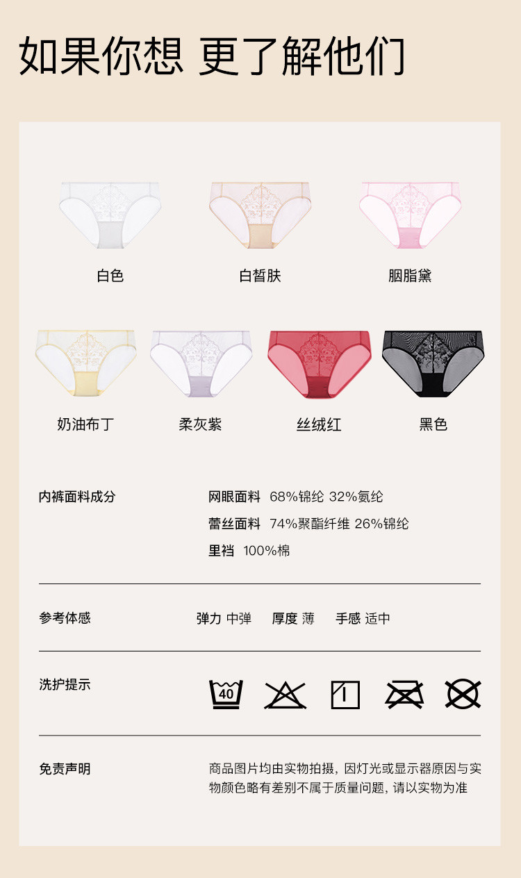 商品名称:【5A抗菌】无尽花海蕾丝清透低腰三角裤性感舒适刺绣内裤女 766272