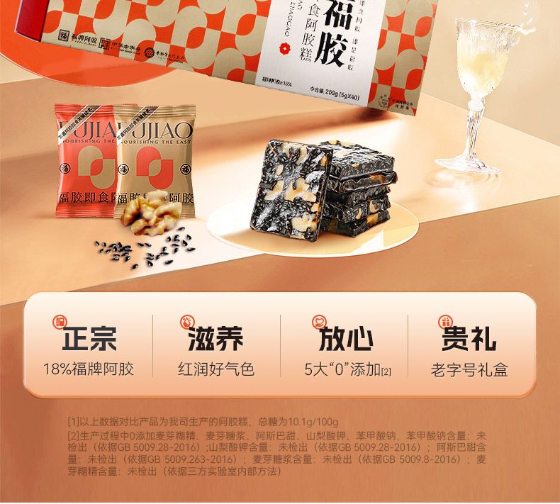 商品名称:福胶 即食阿胶糕200g*2盒 减糖减脂滋补