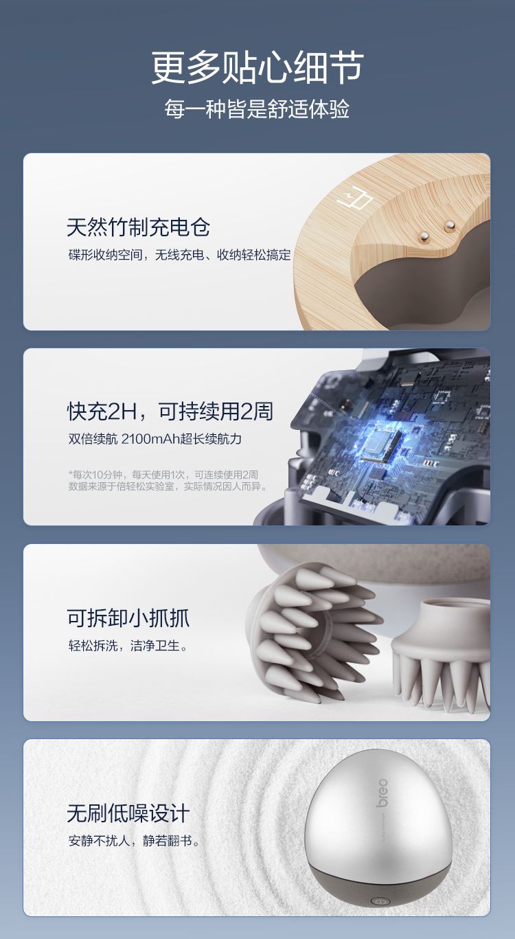 商品名称:倍轻松(breo)头皮按摩器scalp mini2 头部按摩器按摩仪