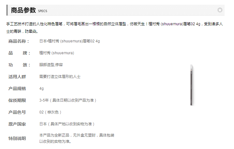 商品名称:Shu Uemura/植村秀 砍刀眉笔 多色可选 防水防汗 国内专柜版