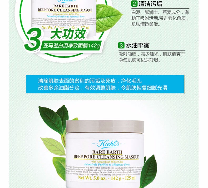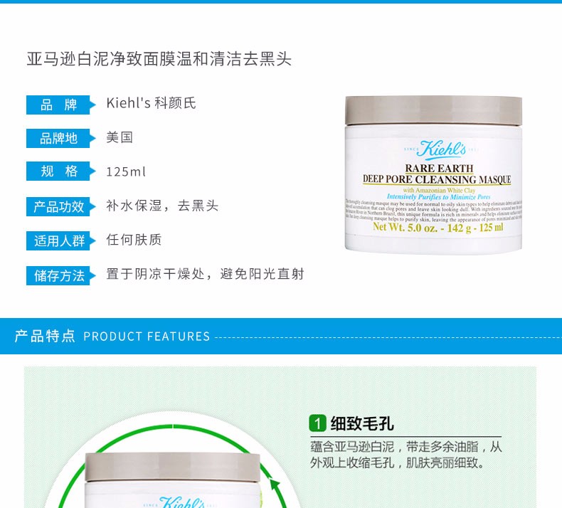 商品名称:Kiehl's/科颜氏 亚马逊白泥清洁面膜 125ml 100件起 国内专柜版