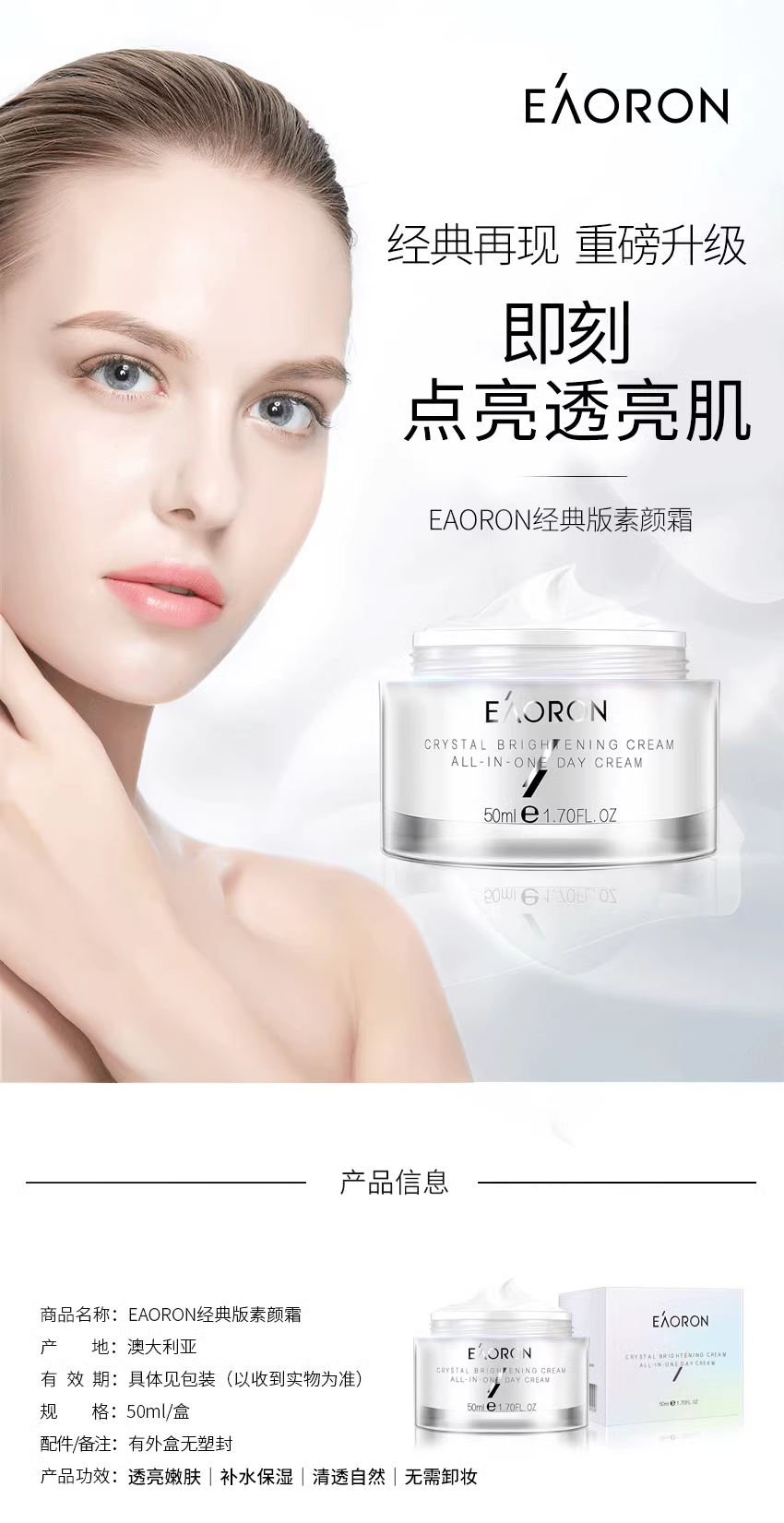 商品名称:EAORON 新升级防晒白素颜霜 Crystal White Moisturiser+SPF 15
