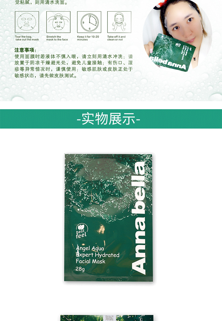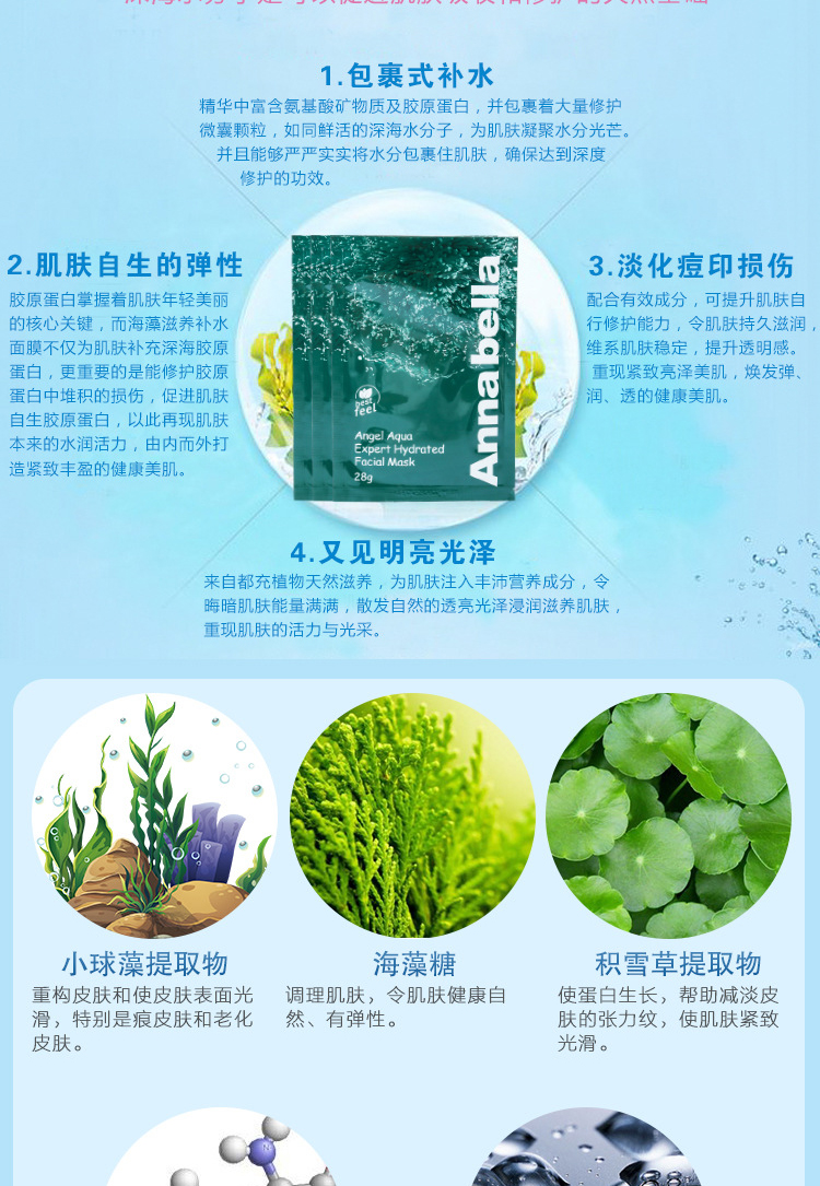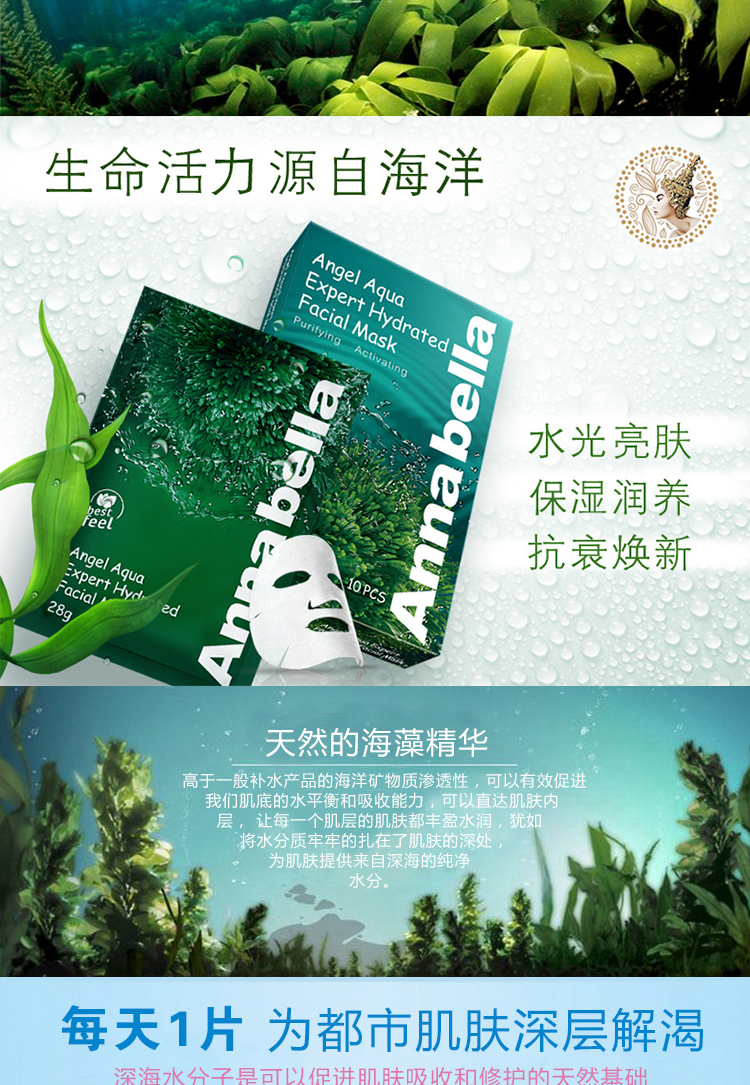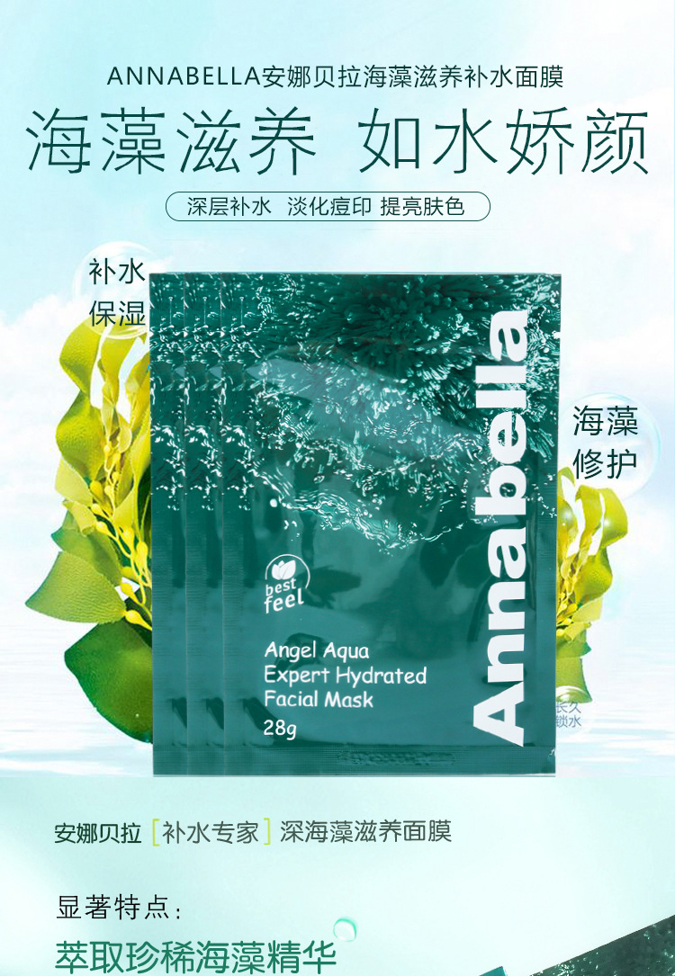 商品名称:ANNABELLA/安娜贝拉 深海矿物补水保湿收缩毛孔海藻面膜 10片