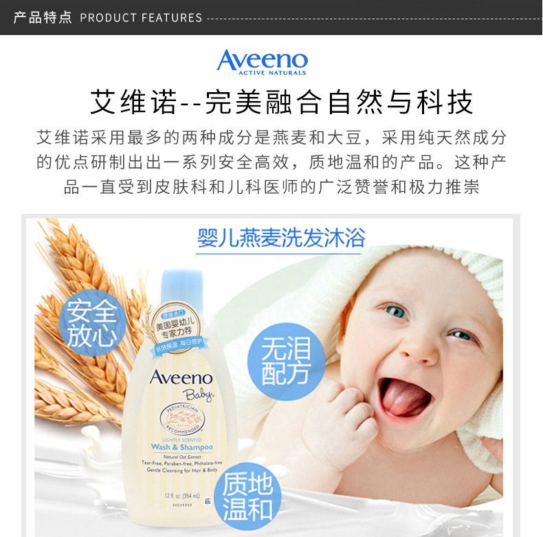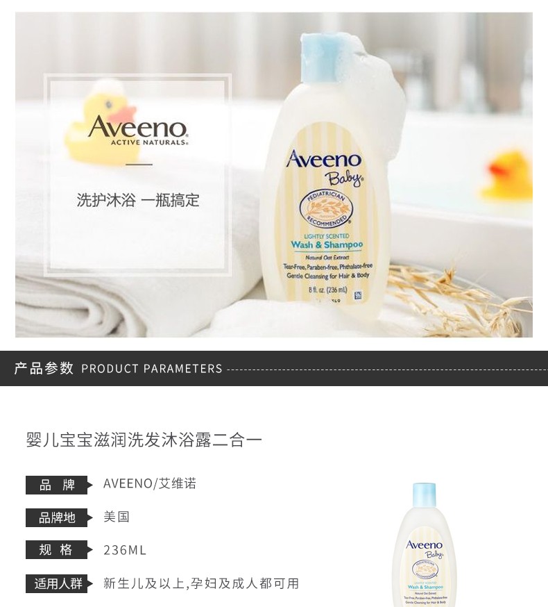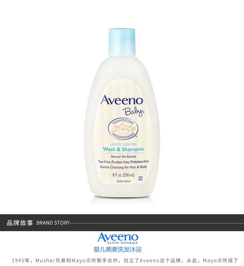 商品名称:Aveeno/艾维诺 天然燕麦洗发沐浴露二合一 236ML