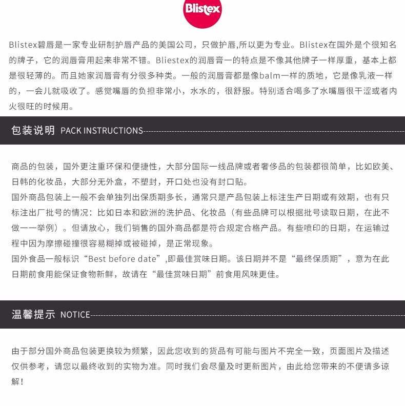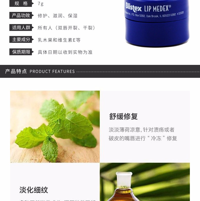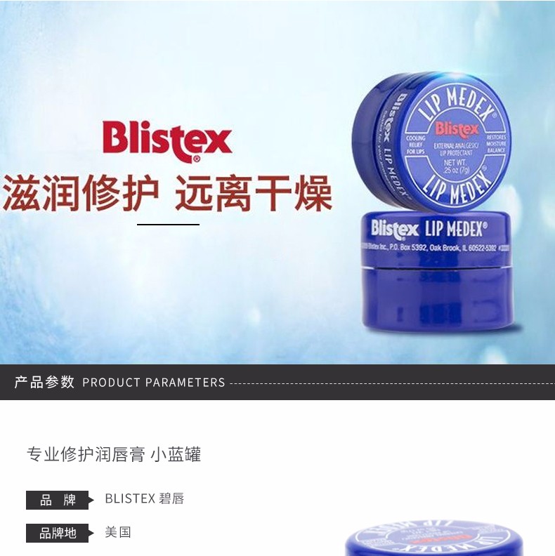 商品名称:Blistex/百蕾适 专业修护润唇膏 小蓝罐 7G