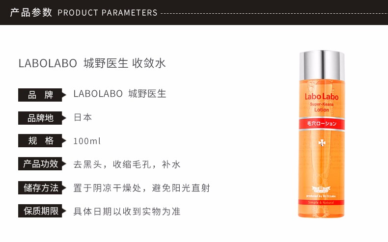 商品名称:DR.CI:LABO/城野医生 收敛水 100ML