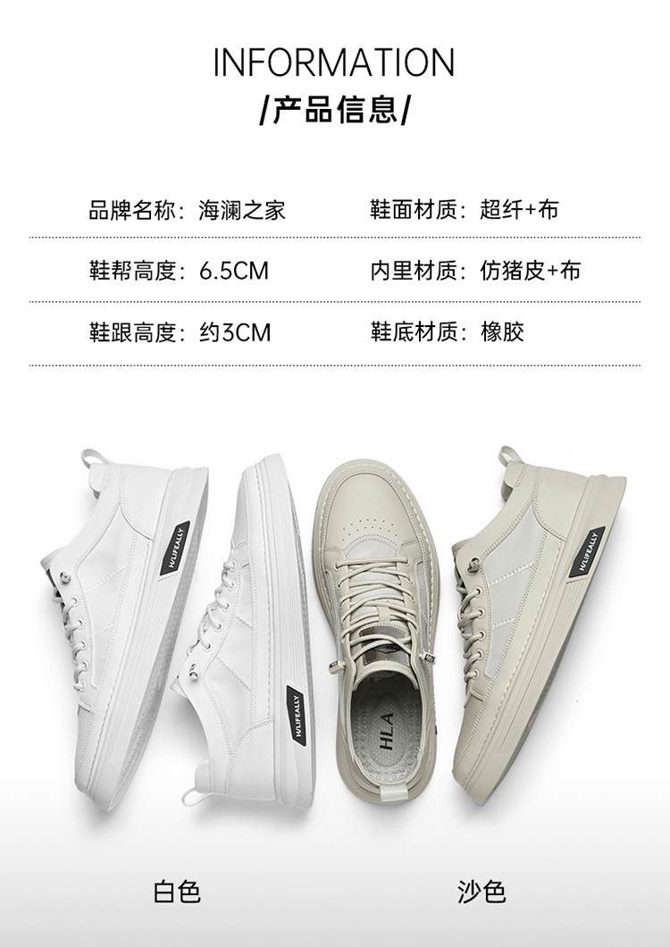 男鞋2025春季小白鞋男百搭休闲鞋男款厚底显高时尚个性板鞋男 976901