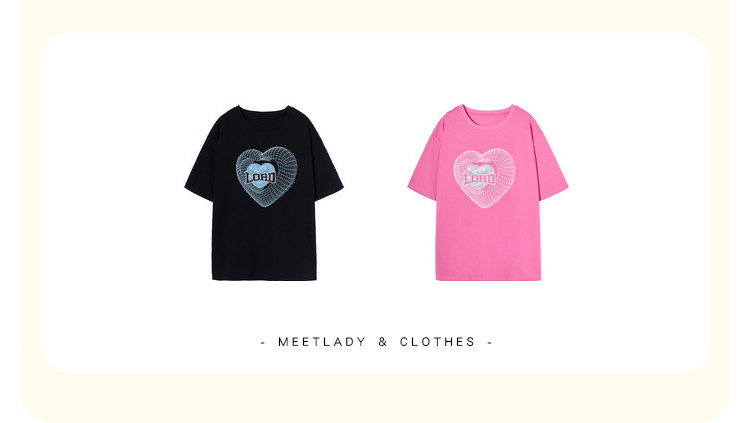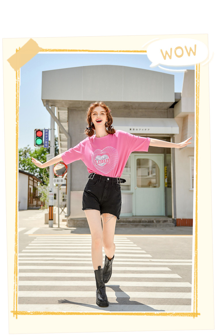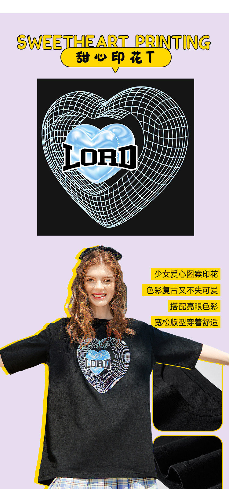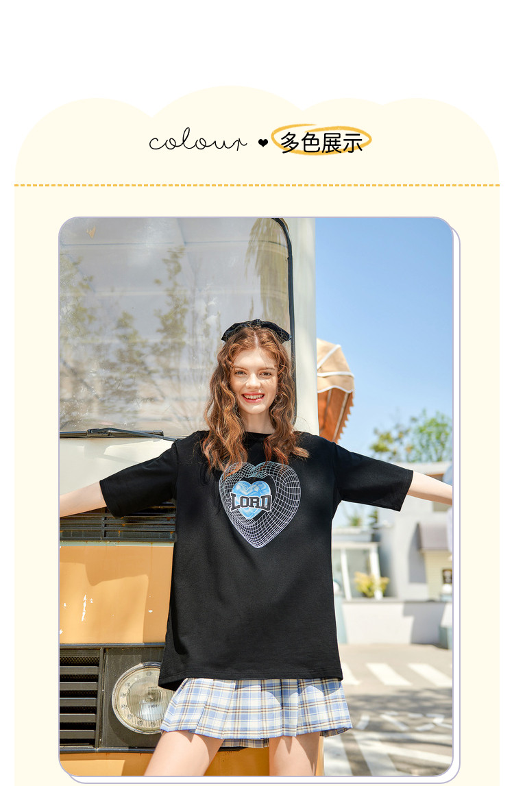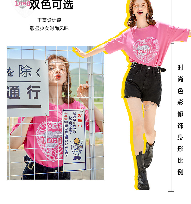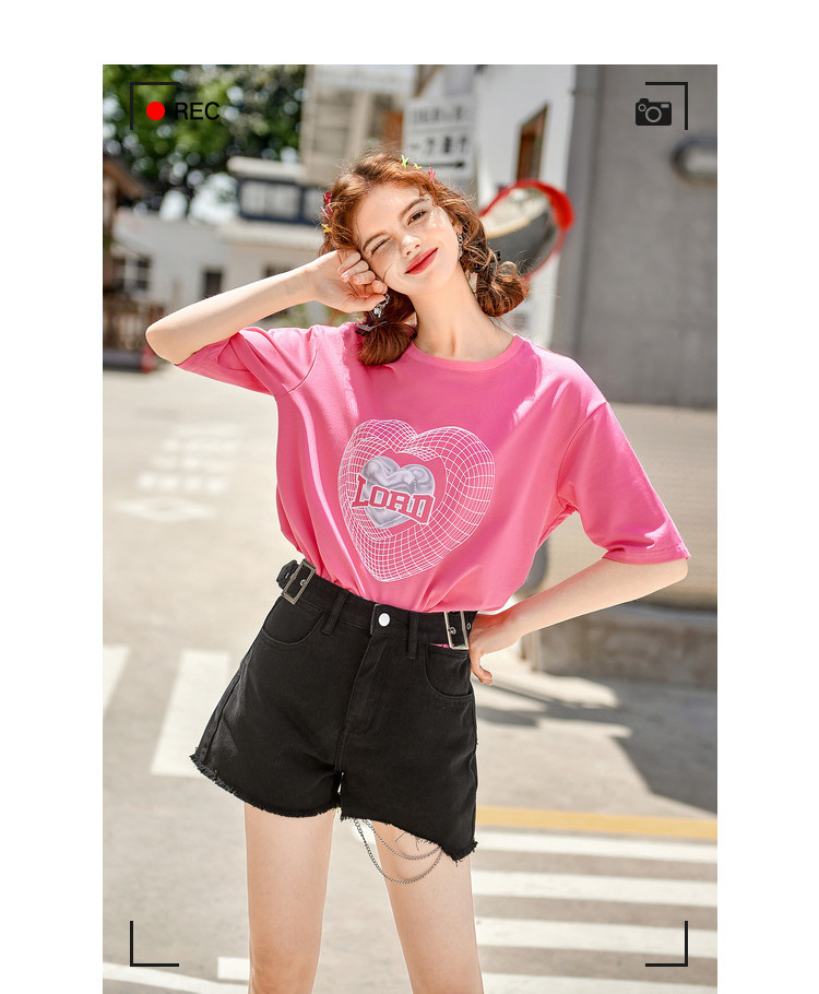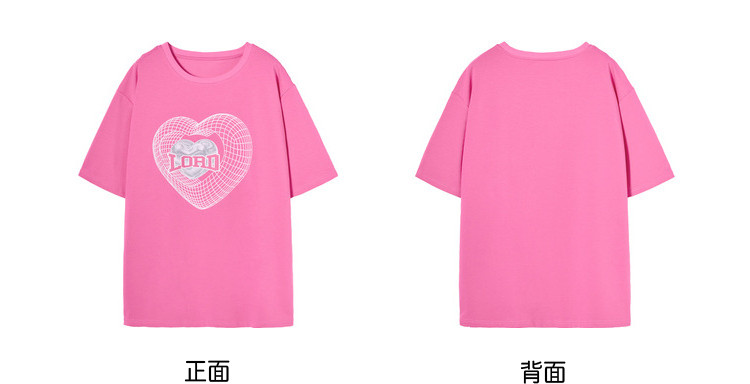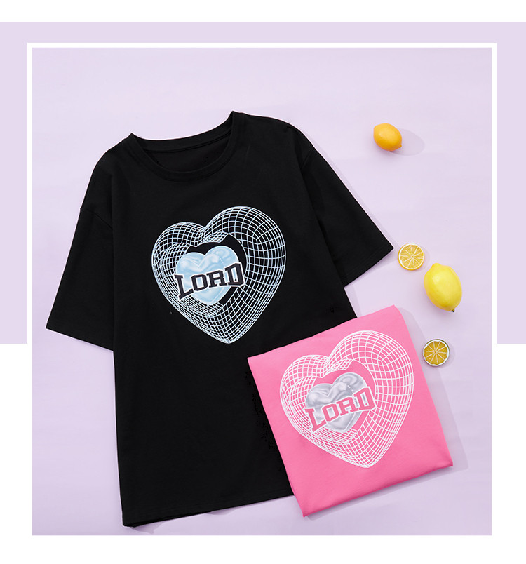 商品名称:夏装国潮粉色爱心短袖女宽松印花半袖上衣T恤潮 008212
