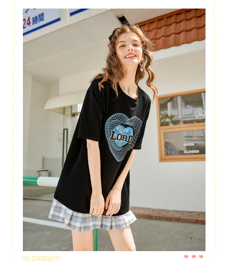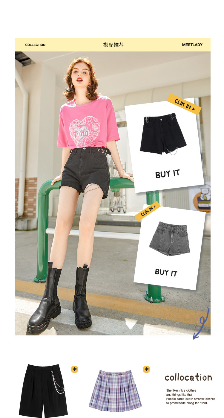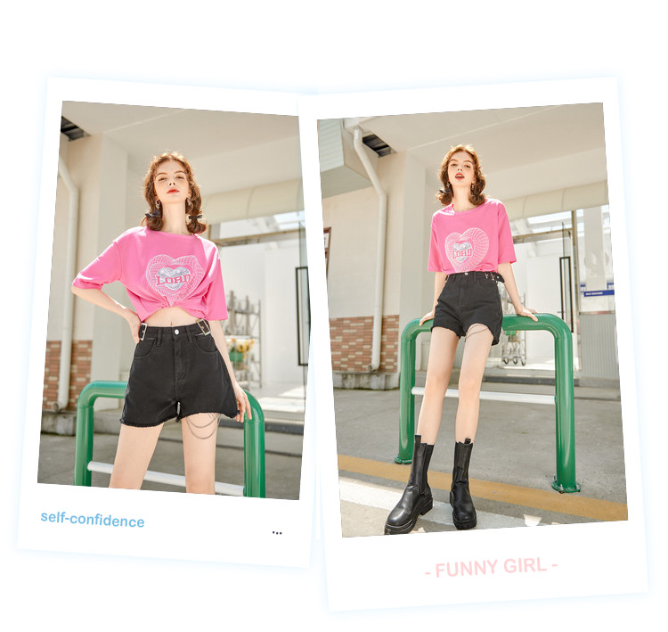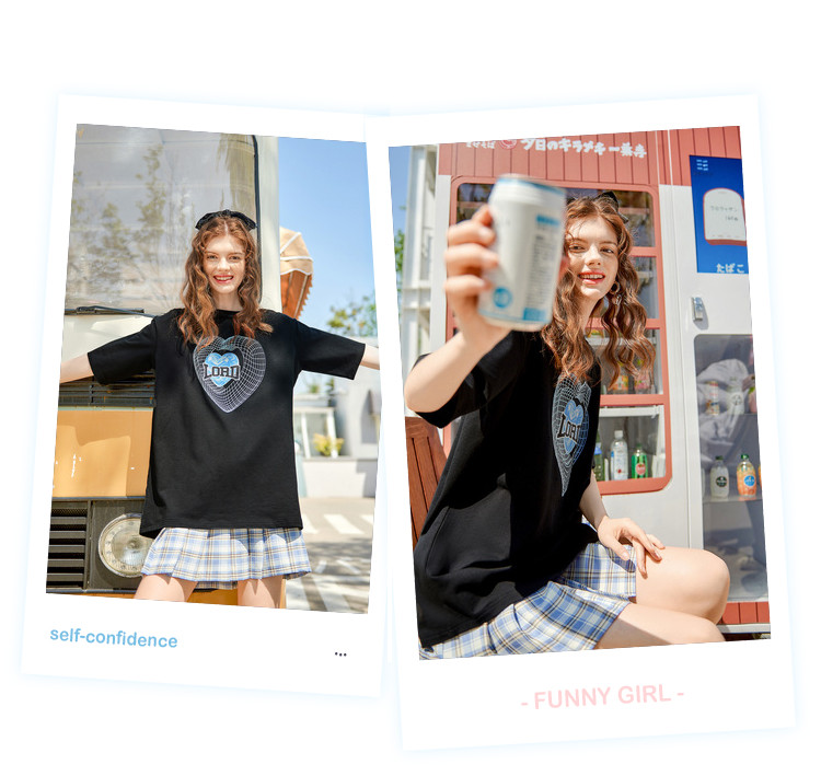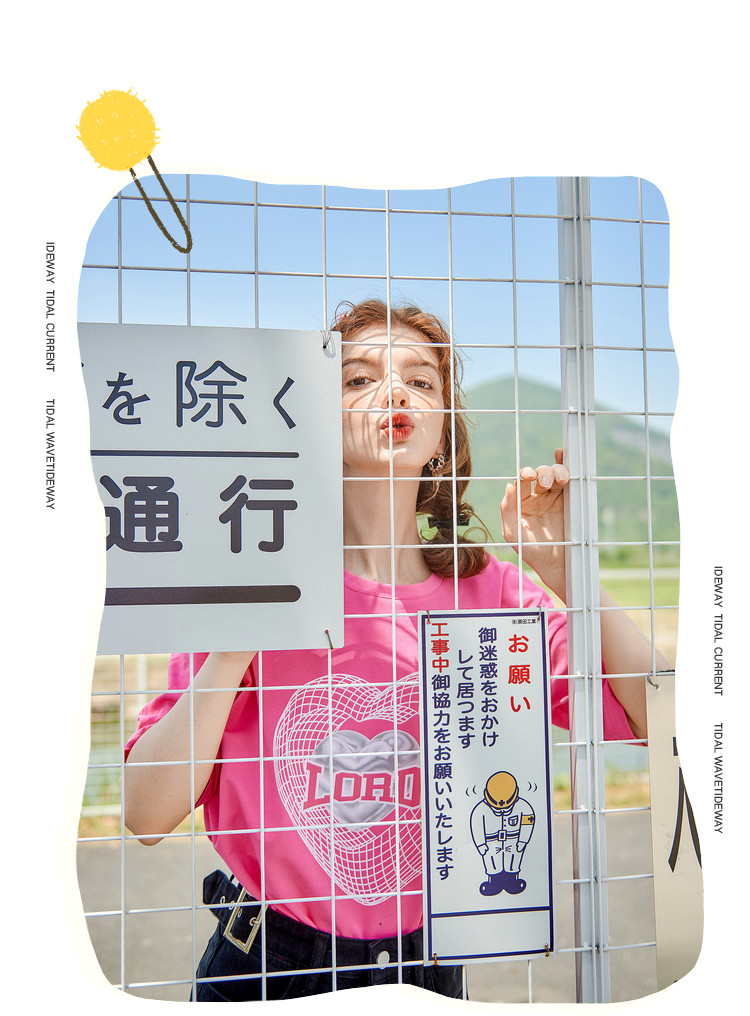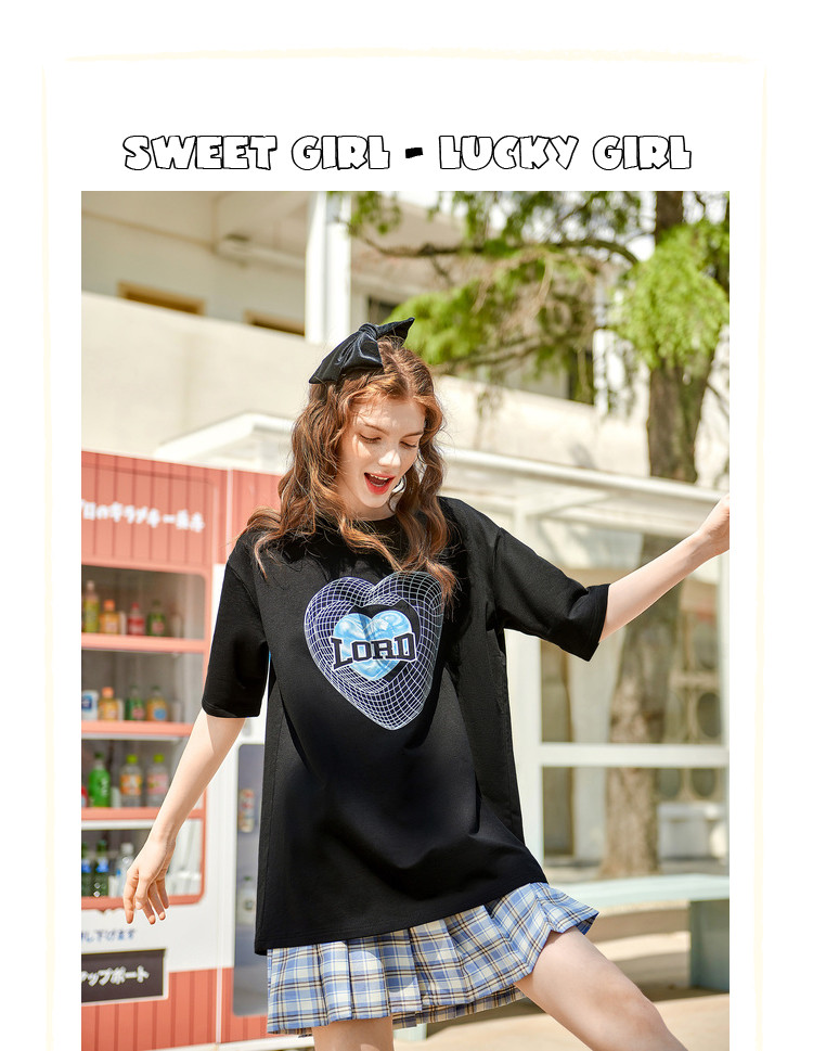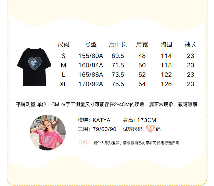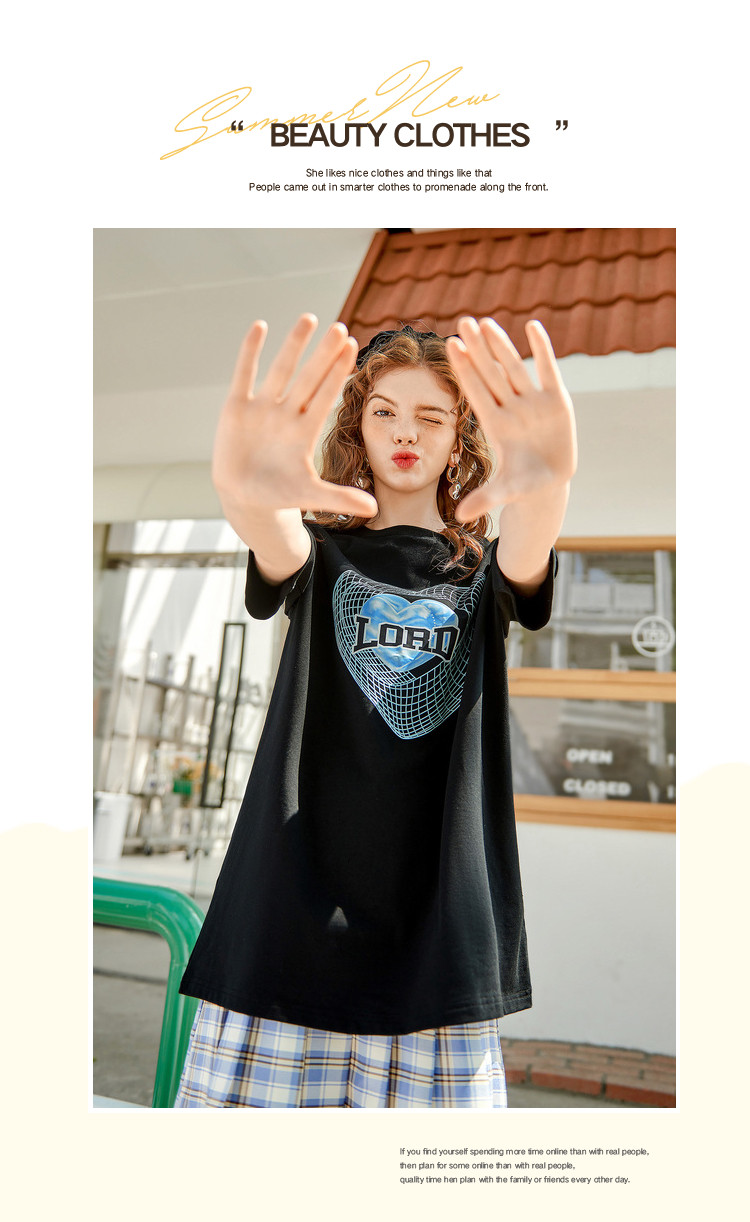 商品名称:夏装国潮粉色爱心短袖女宽松印花半袖上衣T恤潮 008212
