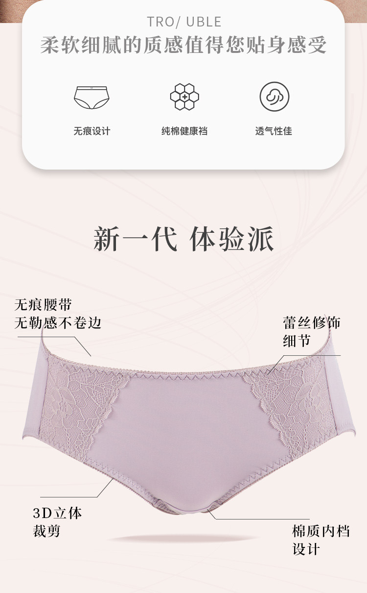 【舒适透气】中腰弹力不夹臀女士蕾丝花边三角内裤内衣女 285067