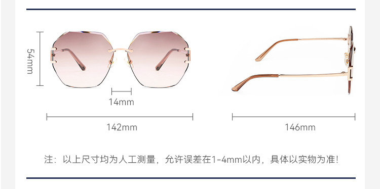 镜框:63mm 鼻梁:14mm 镜腿:146mm