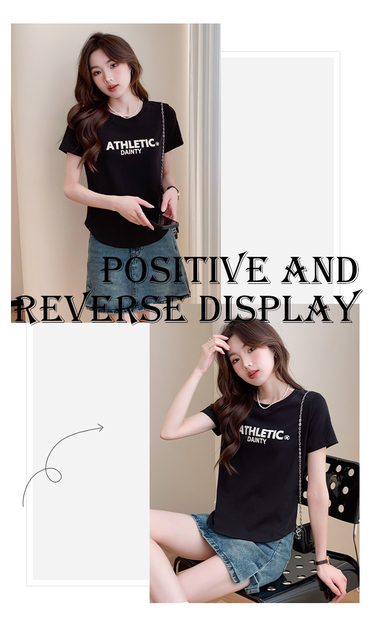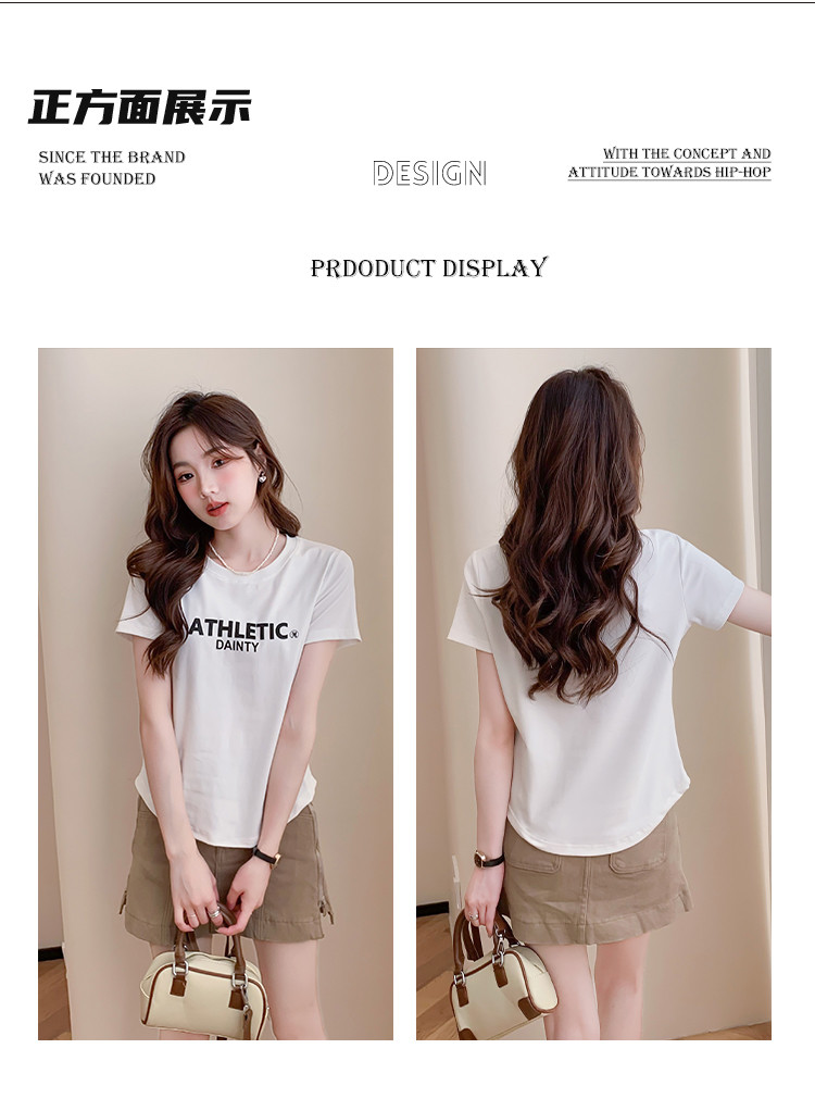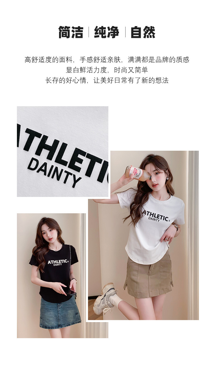 商品名称:时尚字母设计修身显瘦优雅气质2025印花圆领夏季女式短袖T恤 326849