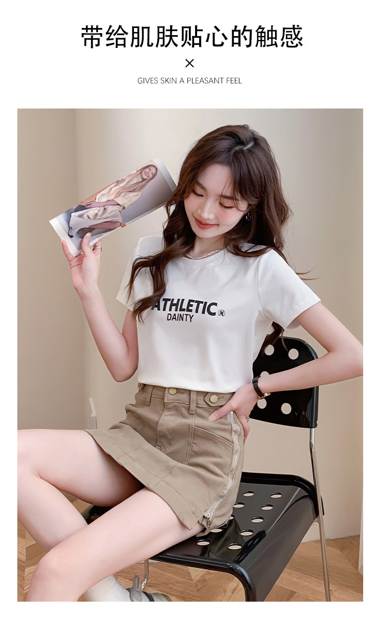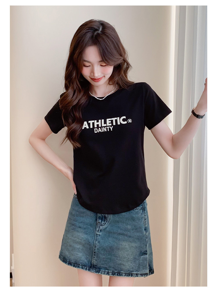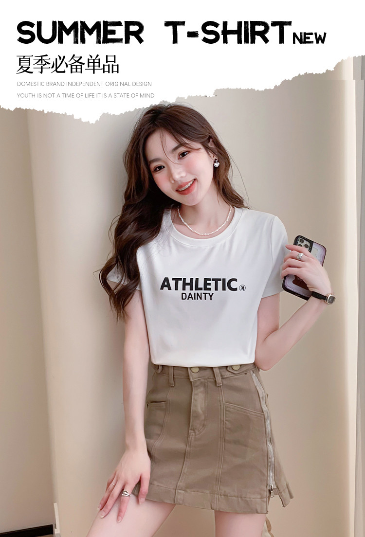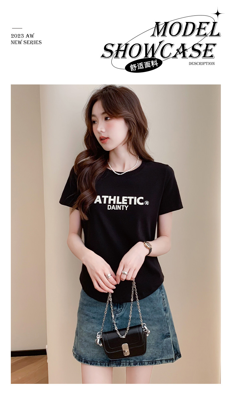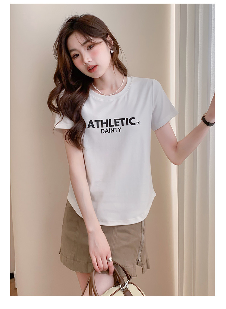 时尚字母设计修身显瘦优雅气质2025印花圆领夏季女式短袖T恤 326849
