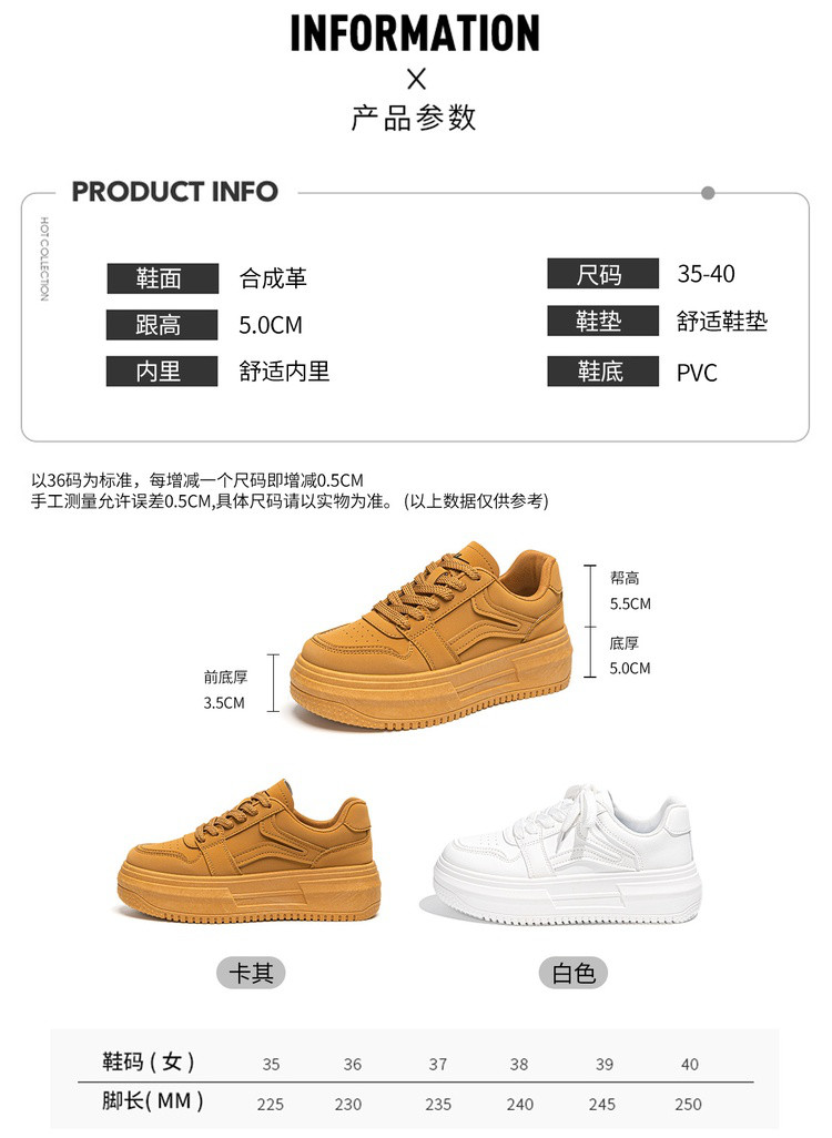 商品名称:【春季爆款】百搭厚底小白鞋女简约时尚低帮板鞋舒适软底休闲鞋 898973