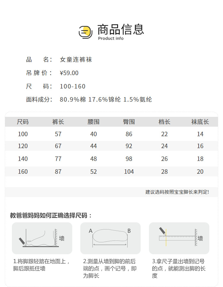 商品名称:儿童连裤袜舞蹈袜秋季女款女童打底袜防走光宝宝中大童基础简约 744197