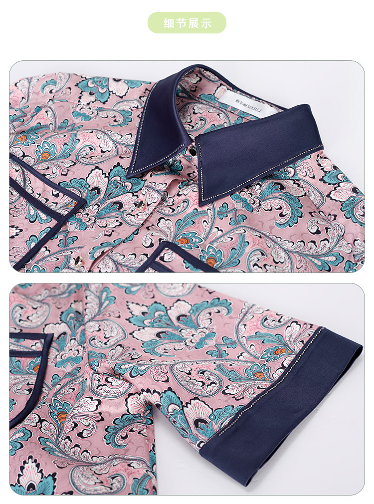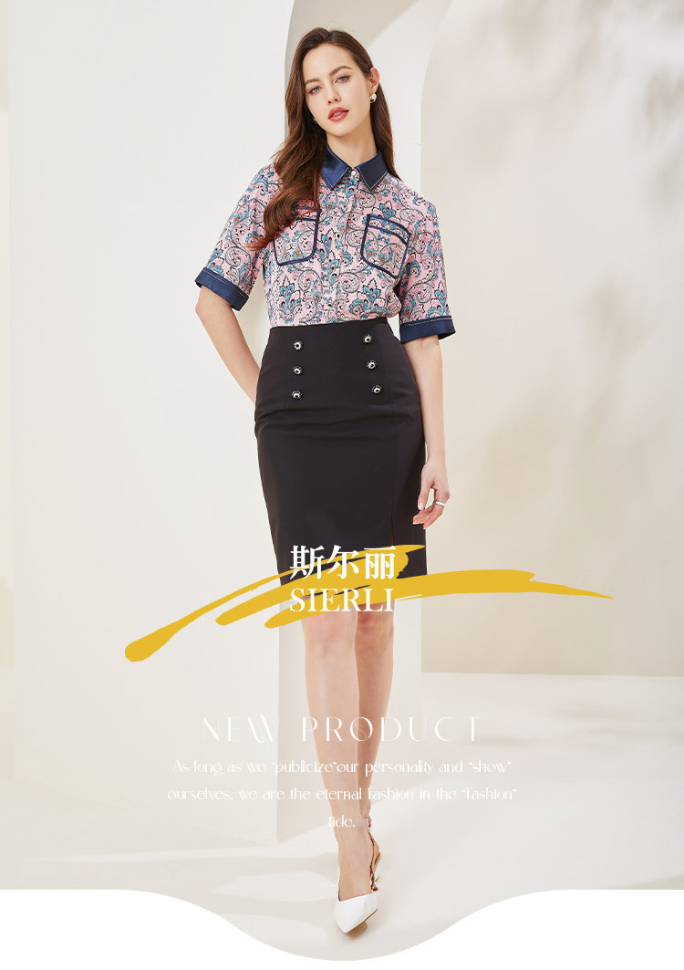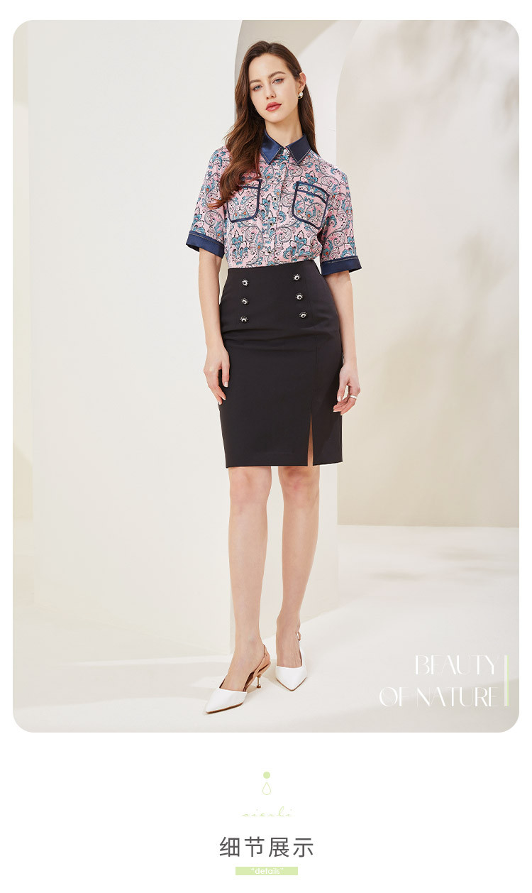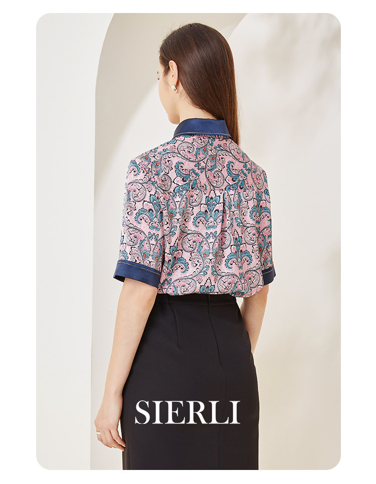 商品名称:商场同款春季复古巴洛克印花撞色滚边贴袋宽松翻领衬衣 475551