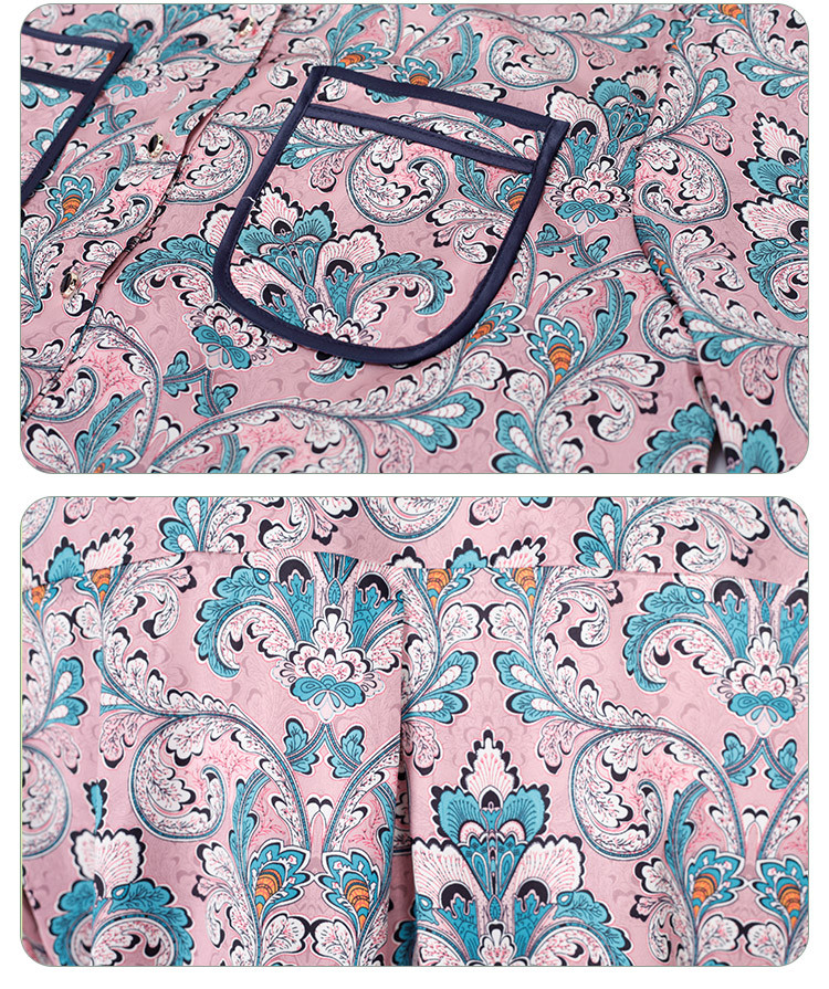 商场同款春季复古巴洛克印花撞色滚边贴袋宽松翻领衬衣 475551