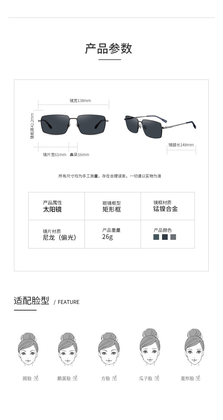 商品名称:海伦凯勒眼镜男开车专用墨镜高清偏光方框太阳镜 816603