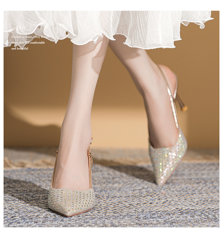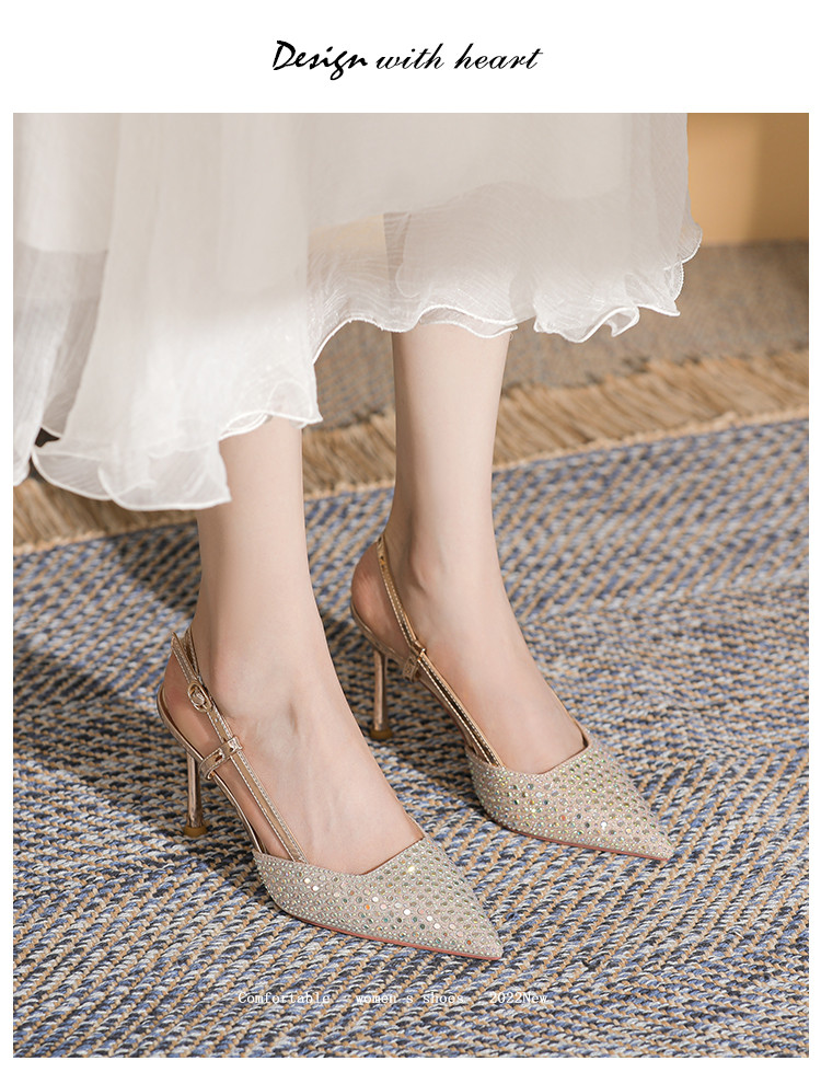 商品名称:夏季气质高跟鞋女百搭透气时尚商务通勤鞋后空凉鞋一脚蹬包头拖鞋 613847