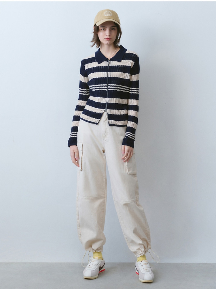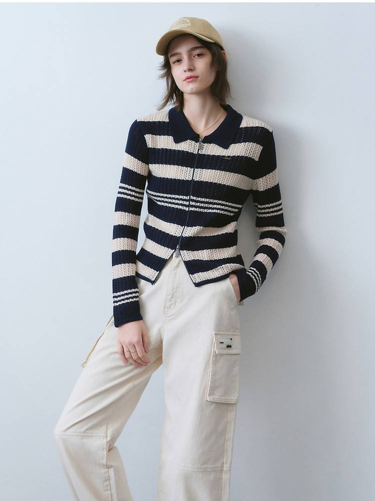 商品名称:针织衫小熊女装针织Polo翻领开衫镂空薄款女 941377