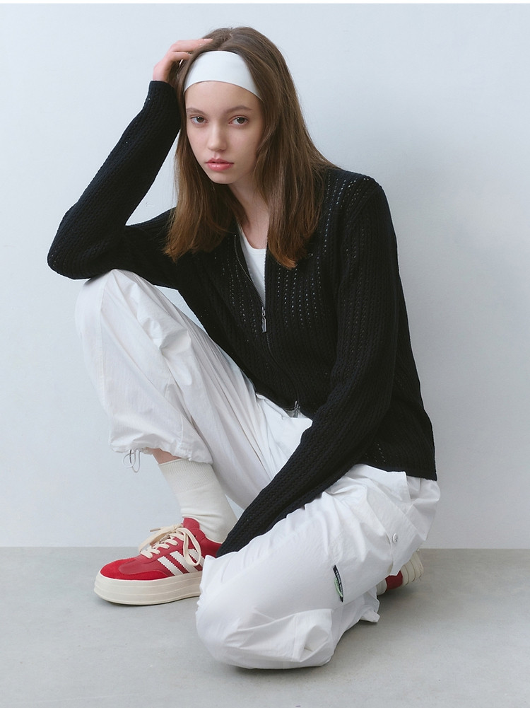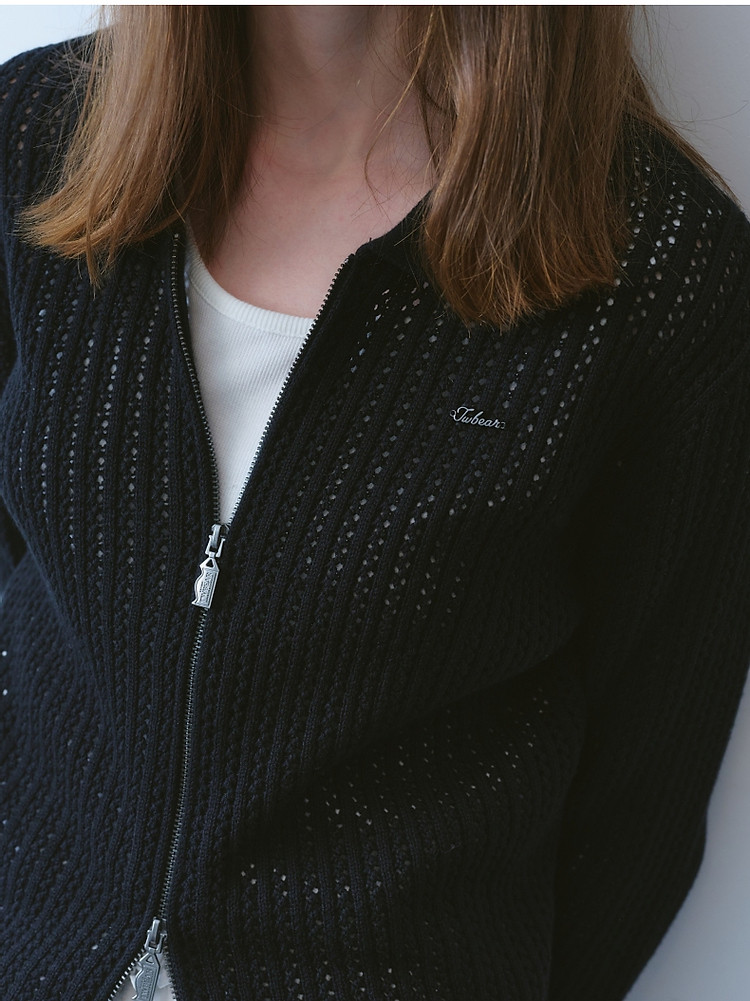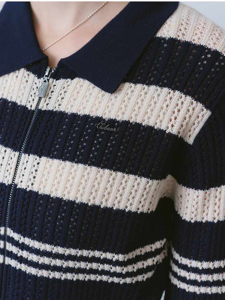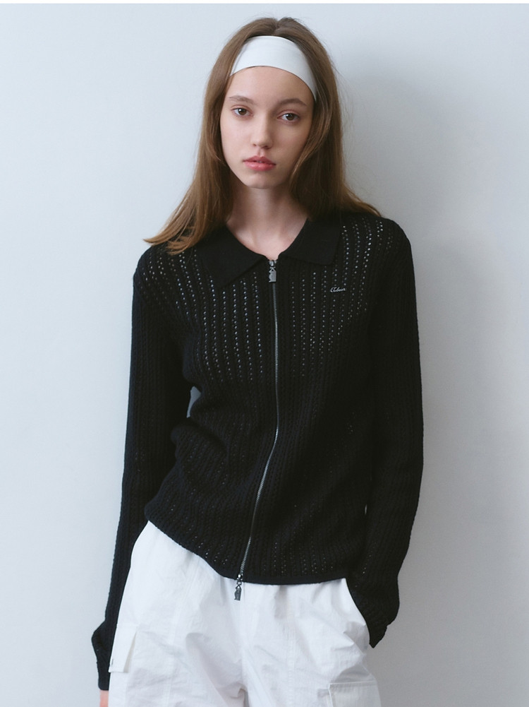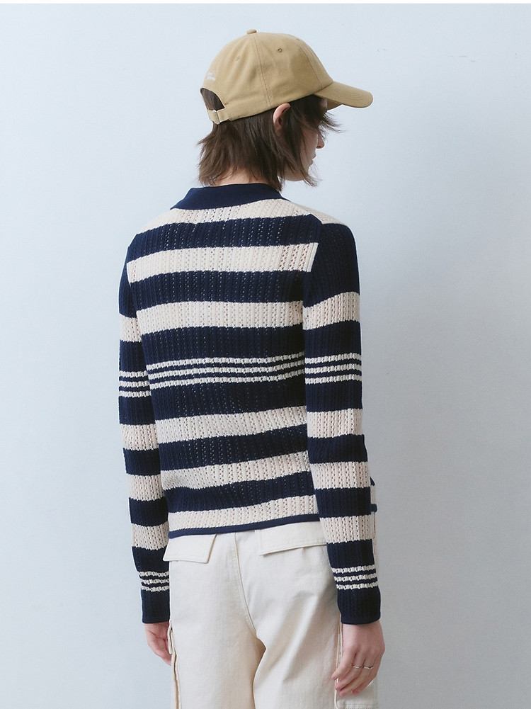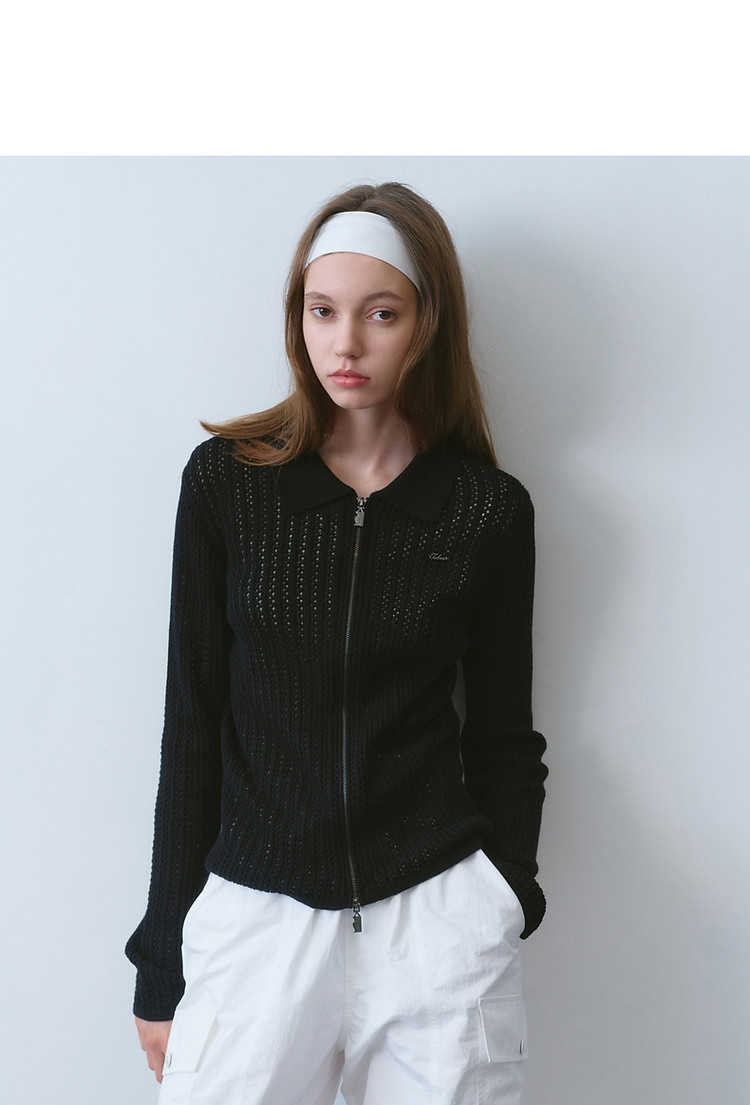 针织衫小熊女装针织Polo翻领开衫镂空薄款女 941377